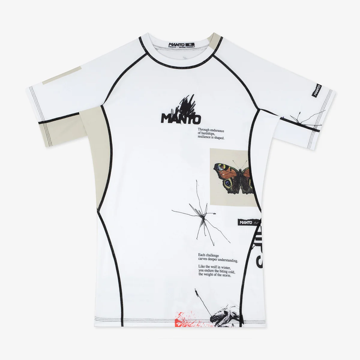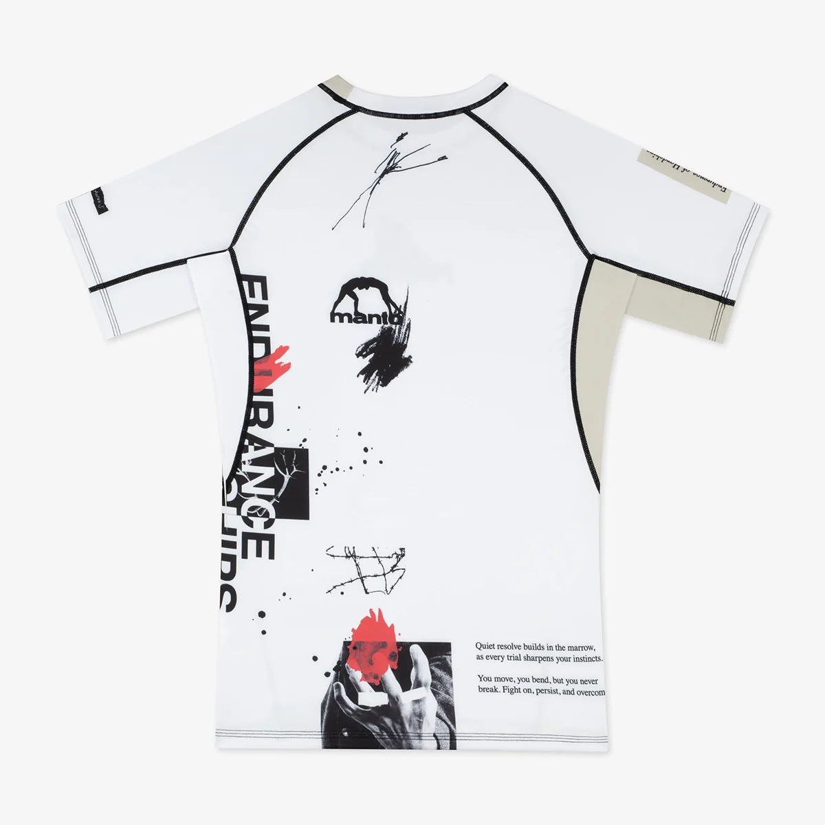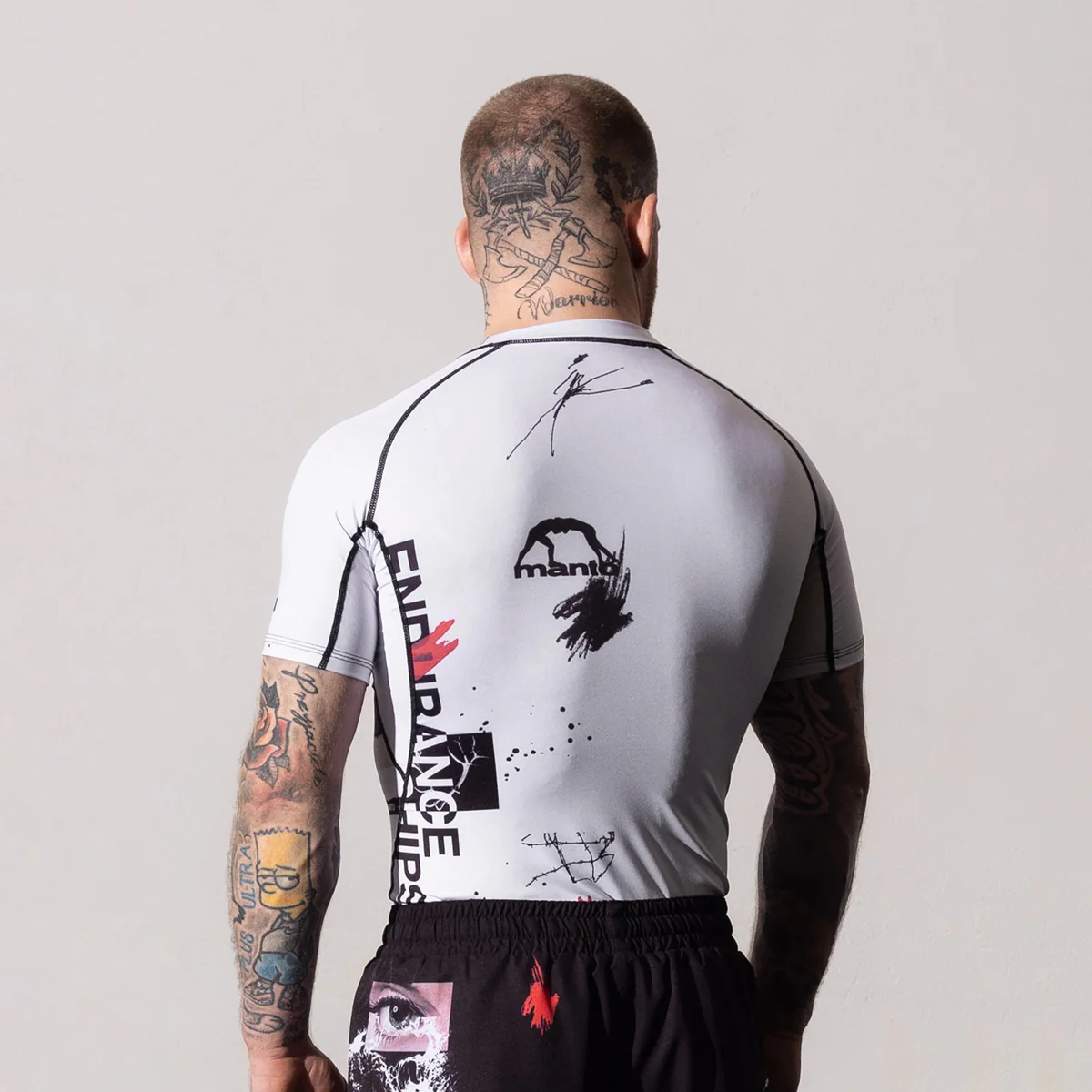 La Rashguard Manto Overcome a maniche corte Bianco è una maglia tecnica progettata per offrire libertà di movimento e comfort sul tatami e in gabbia. La vestibilità avvolgente rimane stabile durante le fasi di lotta e sotto il kimono, mentre il tessuto elasticizzato favorisce la traspirazione e si asciuga rapidamente, permettendoti di concentrarti sulla pratica di MMA, No-Gi e Grappling senza distrazioni. La costruzione a 6 pannelli migliora l’ergonomia e la libertà nei movimenti, mentre le cuciture piatte ed elastiche riducono sfregamenti e irritazioni sulla pelle. La stampa a sublimazione mantiene intatti colori e grafiche Overcome lavaggio dopo lavaggio. Realizzata in poliestere ed elastan, è leggera, resistente e confortevole: una seconda pelle ideale per riscaldamento, drill e sparring.