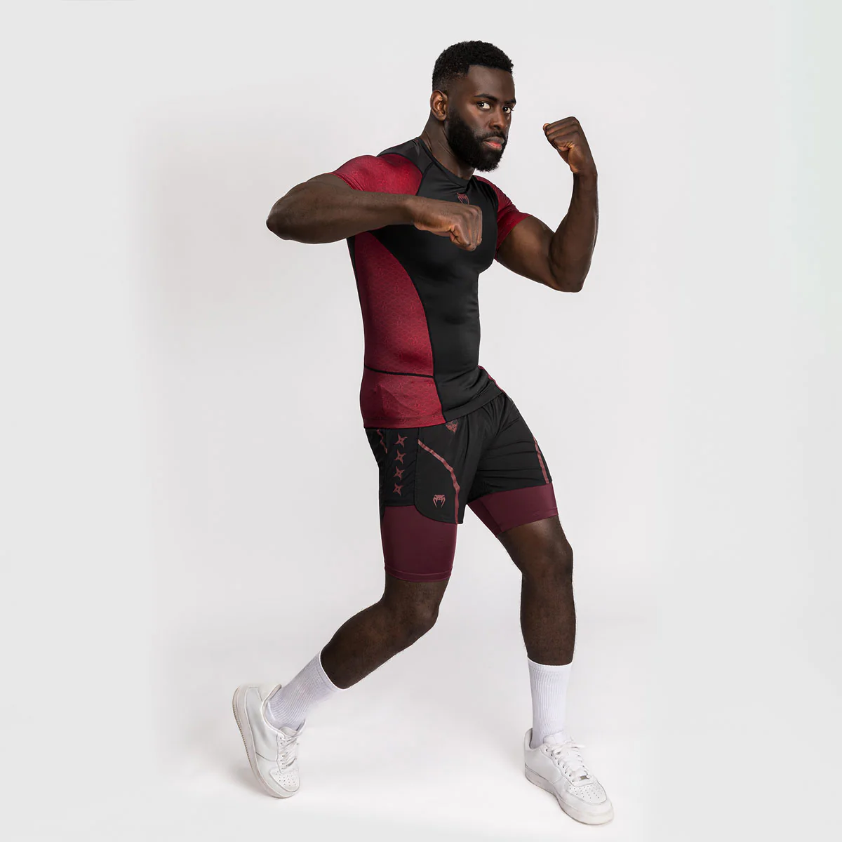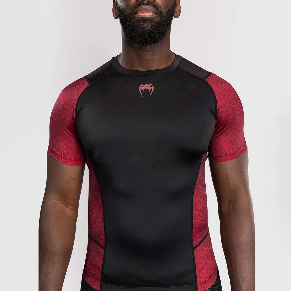 La Rashguard Venum Assassin’s Creed Shadows maniche corte unisce prestazioni da fighter con l’iconico stile della pluripremiata saga Ubisoft. Nata dalla collaborazione Venum x Assassin’s Creed: Shadows, veste come una seconda pelle: protegge da sfregamenti durante grappling e lotta a terra, lasciando massima libertà nei movimenti. Il tessuto in poliestere ed elastan offre effetto di compressione per sostenere i muscoli e favorire il recupero. Le cuciture rinforzate migliorano la durata negli allenamenti intensi. La grafica sublimata richiama il leggendario samurai Yasuke e porta carica in ogni sessione. Girocollo, taglio atletico e look rosso-nero per un impatto immediato.