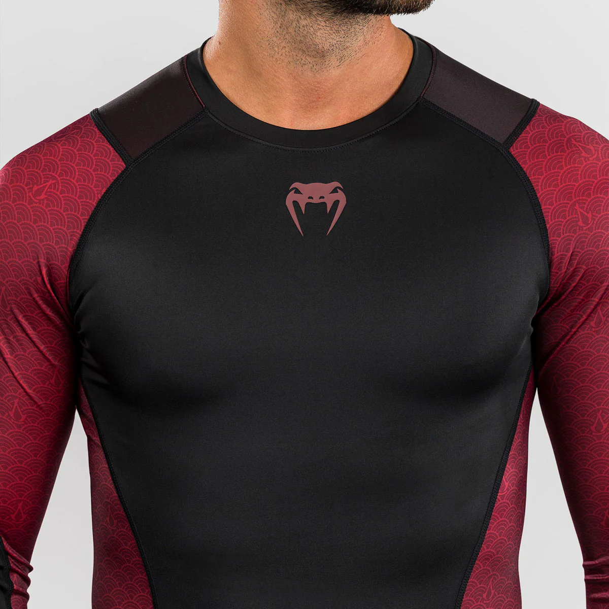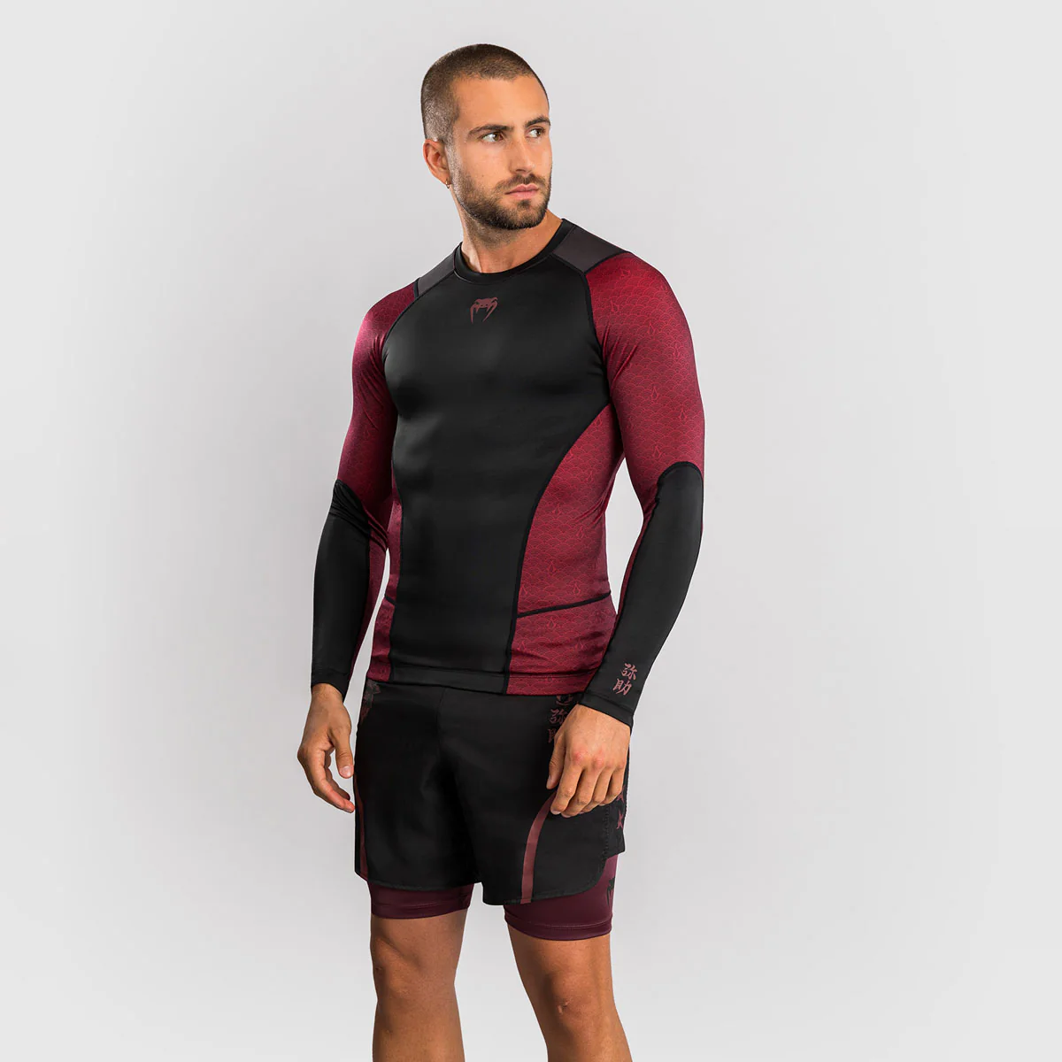 La Rashguard Venum Assassin’s Creed Shadows a maniche lunghe è progettata per offrire compressione, supporto muscolare e protezione durante le sessioni più intense su tatami e in palestra. Il tessuto tecnico in poliestere ed elastan veste come una seconda pelle, favorendo il recupero muscolare e proteggendo da abrasioni e sfregamenti, ideali per il grappling. Le cuciture rinforzate garantiscono resistenza e durata anche sotto stress prolungato. Il design è arricchito da grafiche sublimatiche ispirate al videogioco Assassin’s Creed Shadows: sulla schiena spicca l’imponente figura del guerriero samurai Yasuke. Una Edizione Speciale dal look deciso, pensata per chi allena corpo e mentalità con lo spirito del vero guerriero.