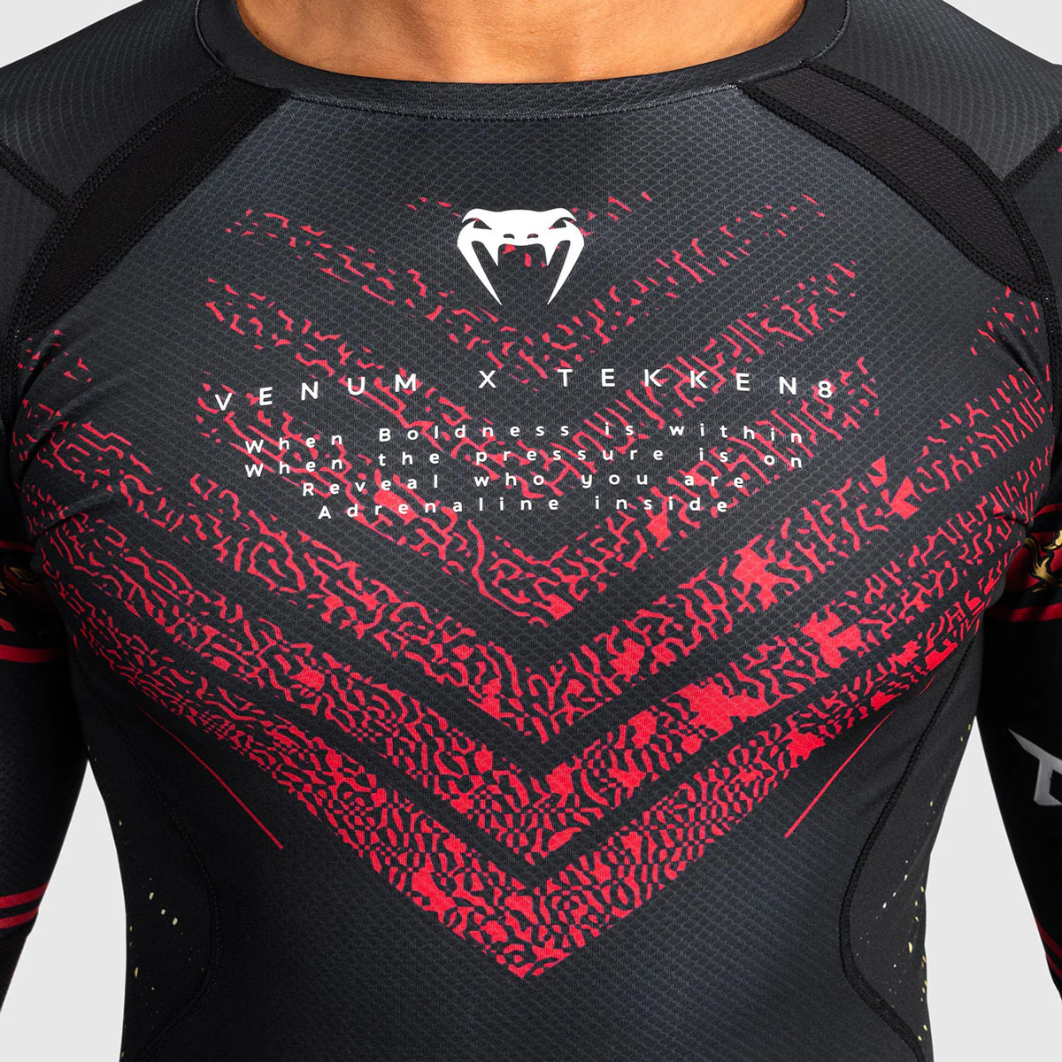 La Rashguard Venum x Tekken 8 – Marshall Law è il connubio perfetto tra prestazioni tecniche e uno stile ispirato all’iconico personaggio del celebre videogioco. Ideale per allenamenti intensi di grappling, BJJ e MMA, questa rashguard offre protezione avanzata contro irritazioni e graffi, garantendo una libertà di movimento ottimale durante ogni sessione. Il tessuto compressivo fornisce un effetto “seconda pelle”, favorendo il recupero muscolare e contribuendo a migliorare le tue prestazioni. La rashguard consente traspirabilità ottimale e una gestione ottimale del sudore, inoltre offre una lunga durata grazie alle cuciture rinforzate. Il design, arricchito dai dettagli grafici ispirati a Marshall Law, dona un tocco unico e accattivante, perfetto per chi desidera distinguersi.