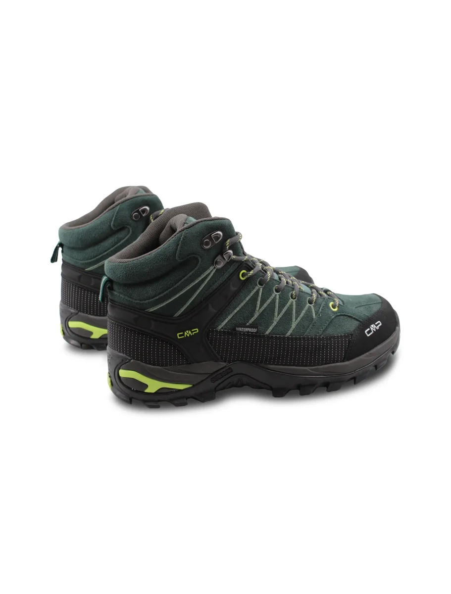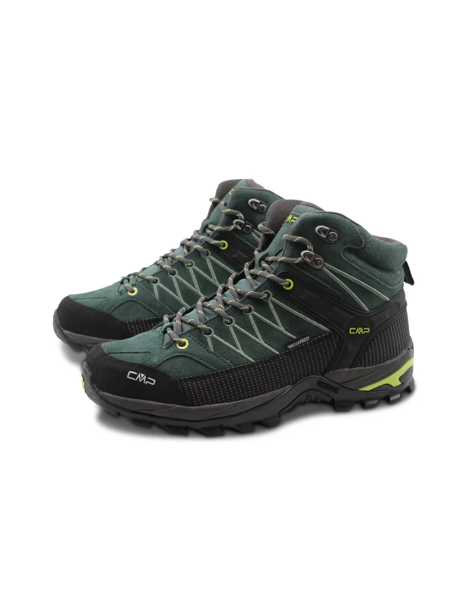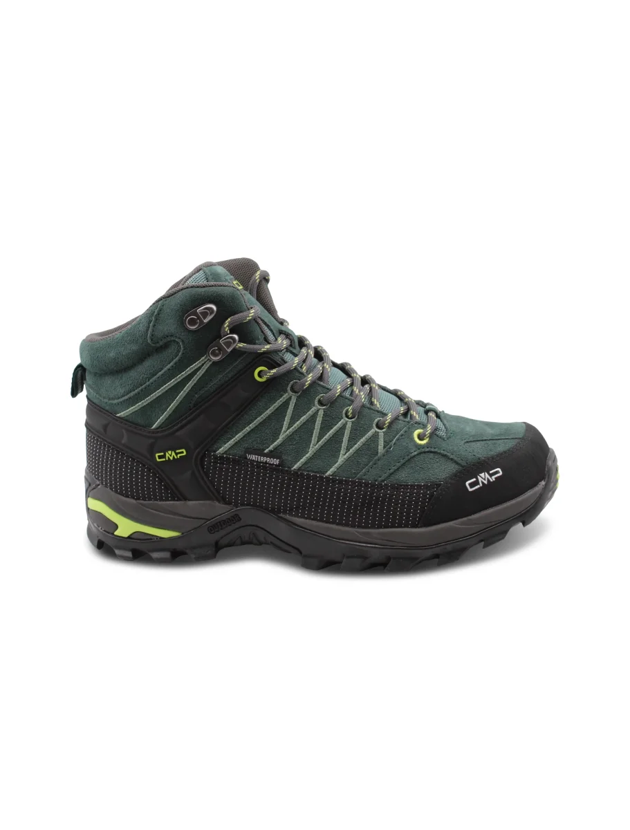 Scarpone trekking da uomo Cmp Rigel Mid in vera pelle con inserti in tessuto e fondo in gomma Fullongrip, sottopiede Ortholite e fodera Waterproof Clima Protect. Modello ideale per le tue escursioni.
