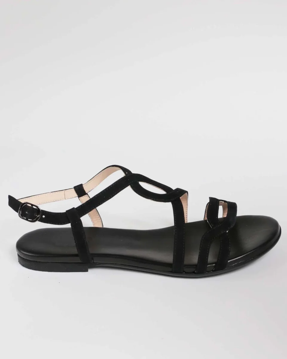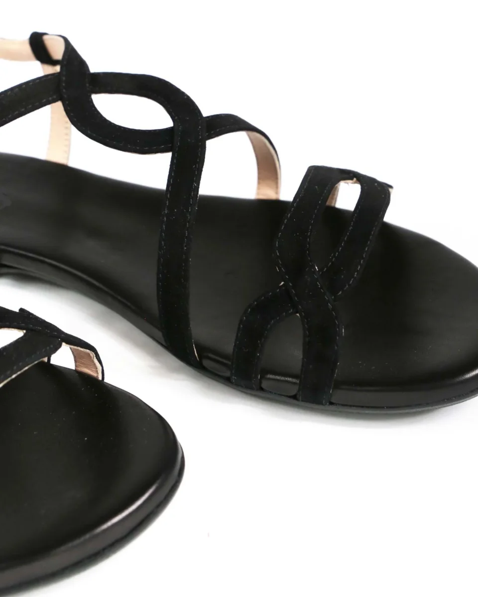 Il sandalo Roma in camoscio nero è in vera pelle, versatile e molto comodo con la soletta morbida e allacciatura alla caviglia, è in vera pelle e prodotto interamente in Italia da mani artigiane, è disponibile nei numeri grandi e in altre varianti di colore presenti sul nostro shop online.
