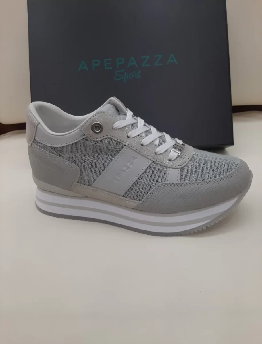 la sneaker di ispirazione running che dona ben 6 cm di altezza, quasi segreti. La zeppa interna di 3 cm e quella esterna in eva, di altezza analoga, sono infatti talmente bilanciate ed equilibrate che non fanno percepire tale spessore all’esterno.