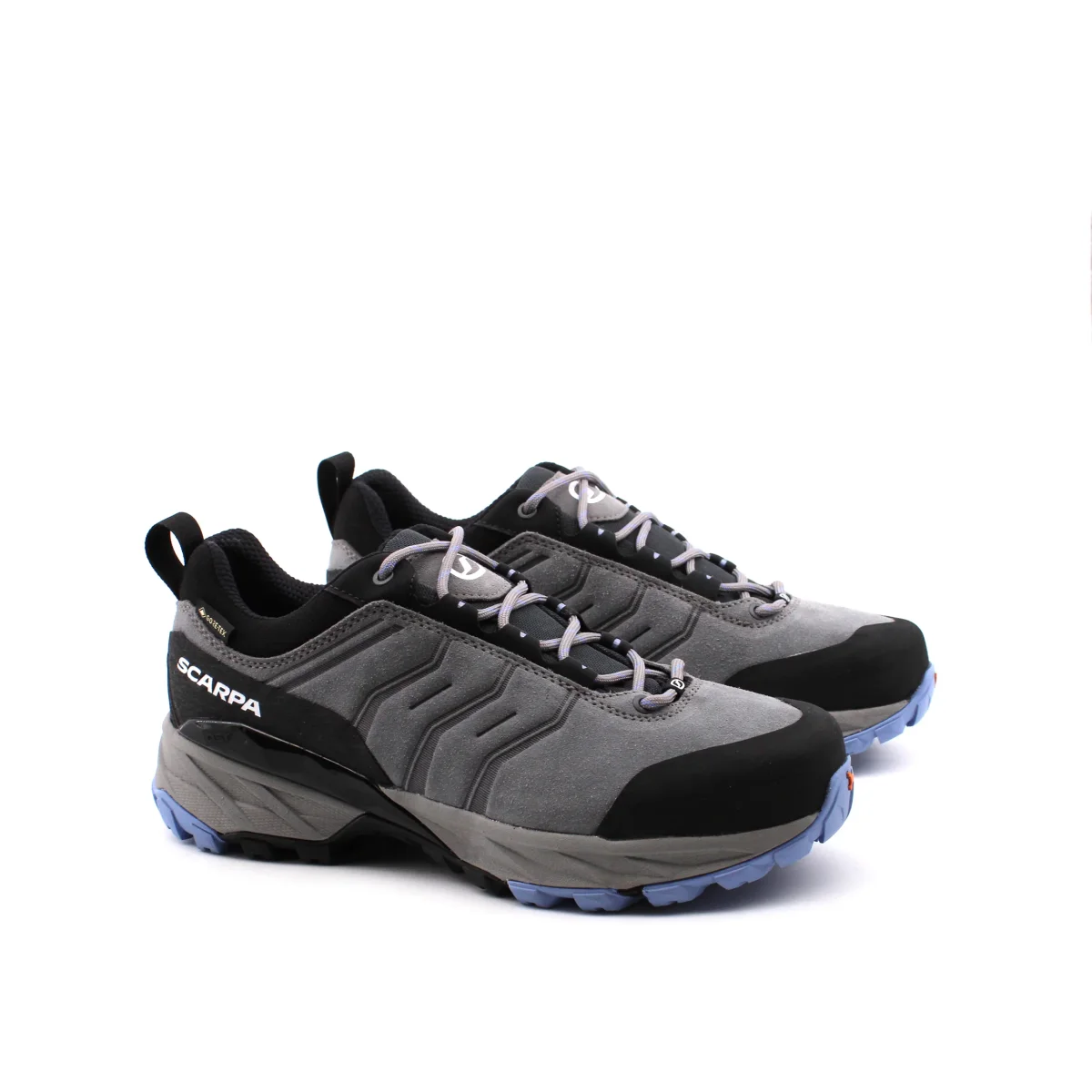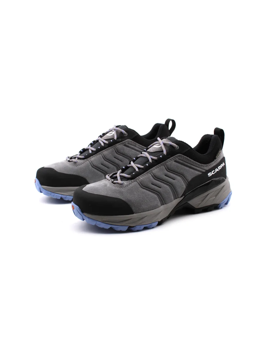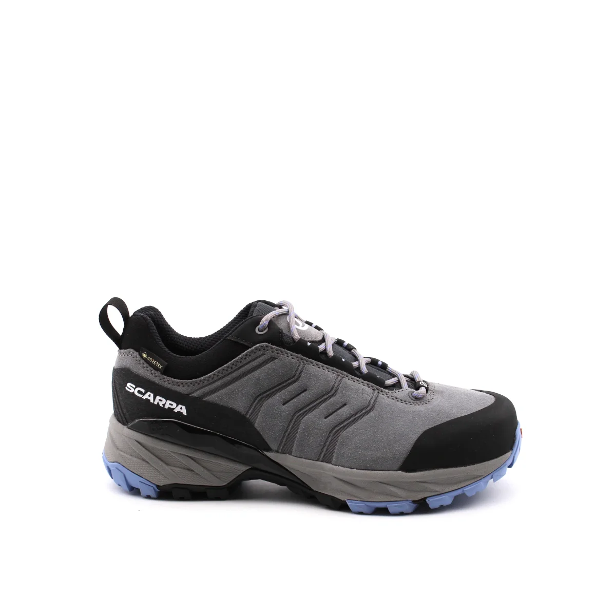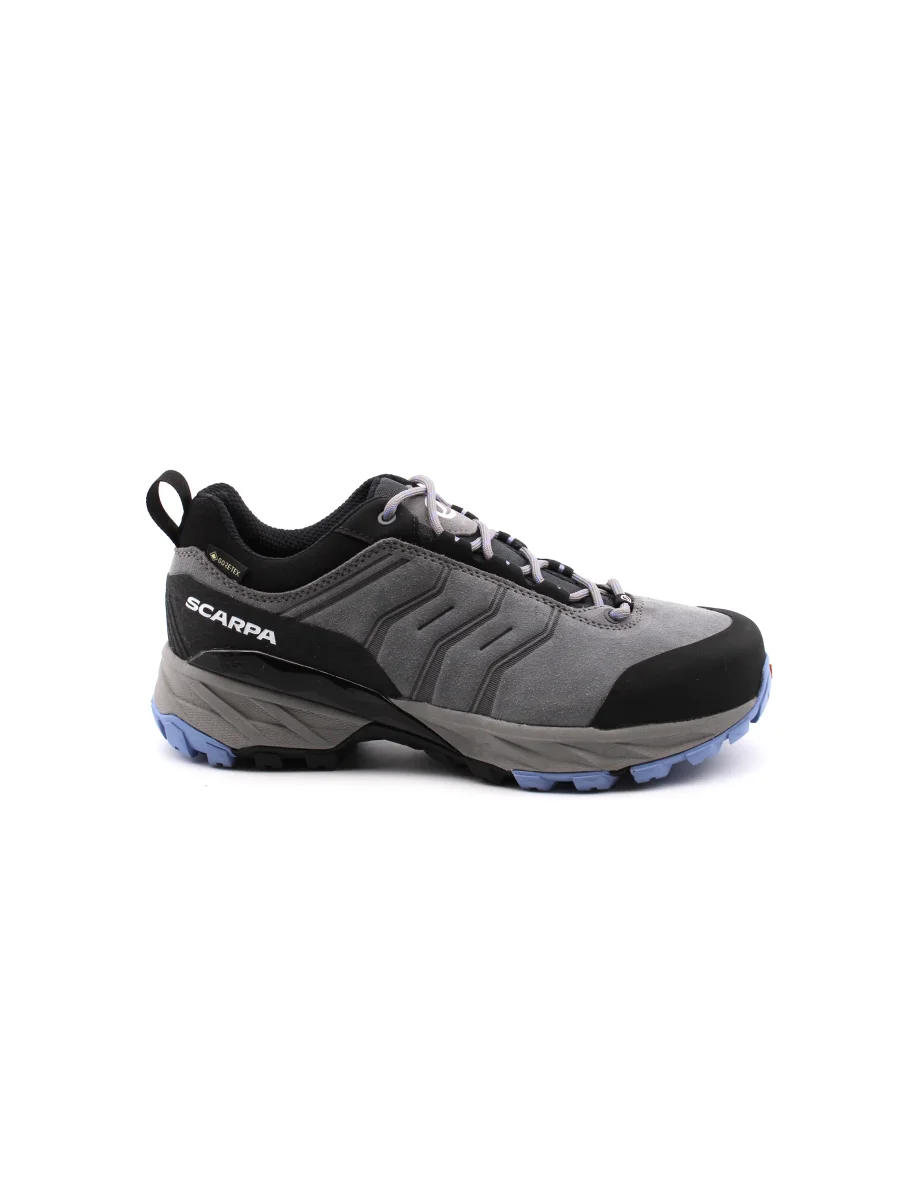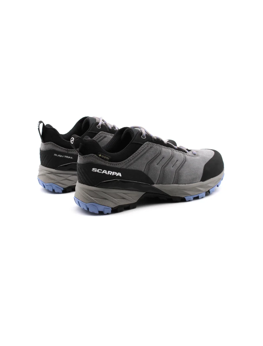 Scarpa Rush Trail Gtx scarpa da hiking donna con tomaia in vera pelle scamosciata idrorepellente, sottopiede removibile in tessuto, fodera Gore-Tex e suola Presa TRK-01 è realizzata in mescola SUPERGUM ad alta aderenza e durabilità . Pensata per hiking, passeggiate lungo sentieri con carichi medio-leggeri.