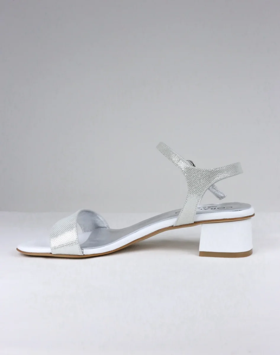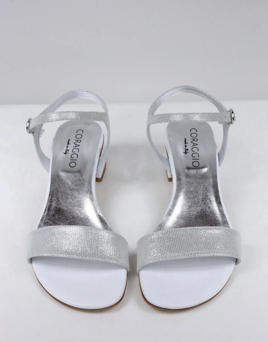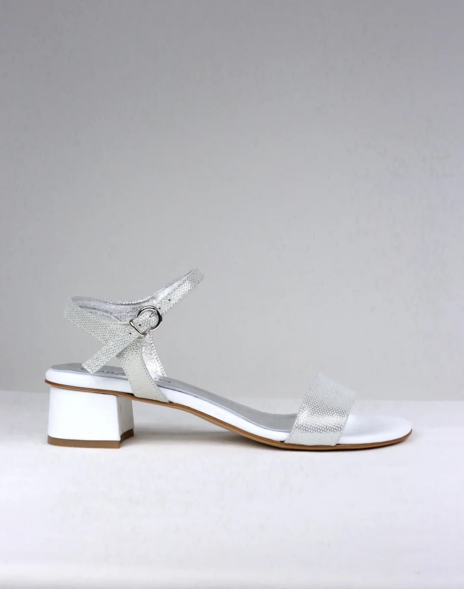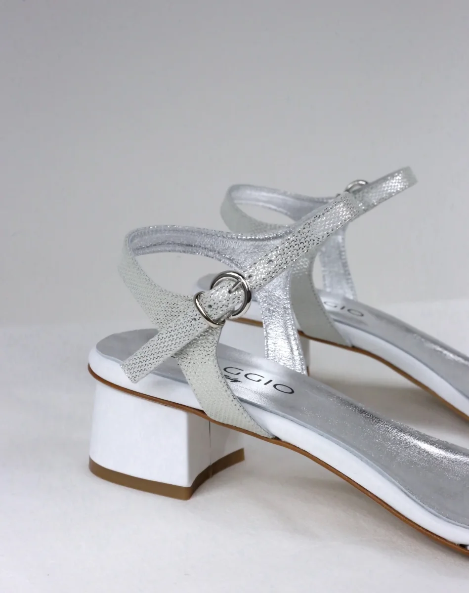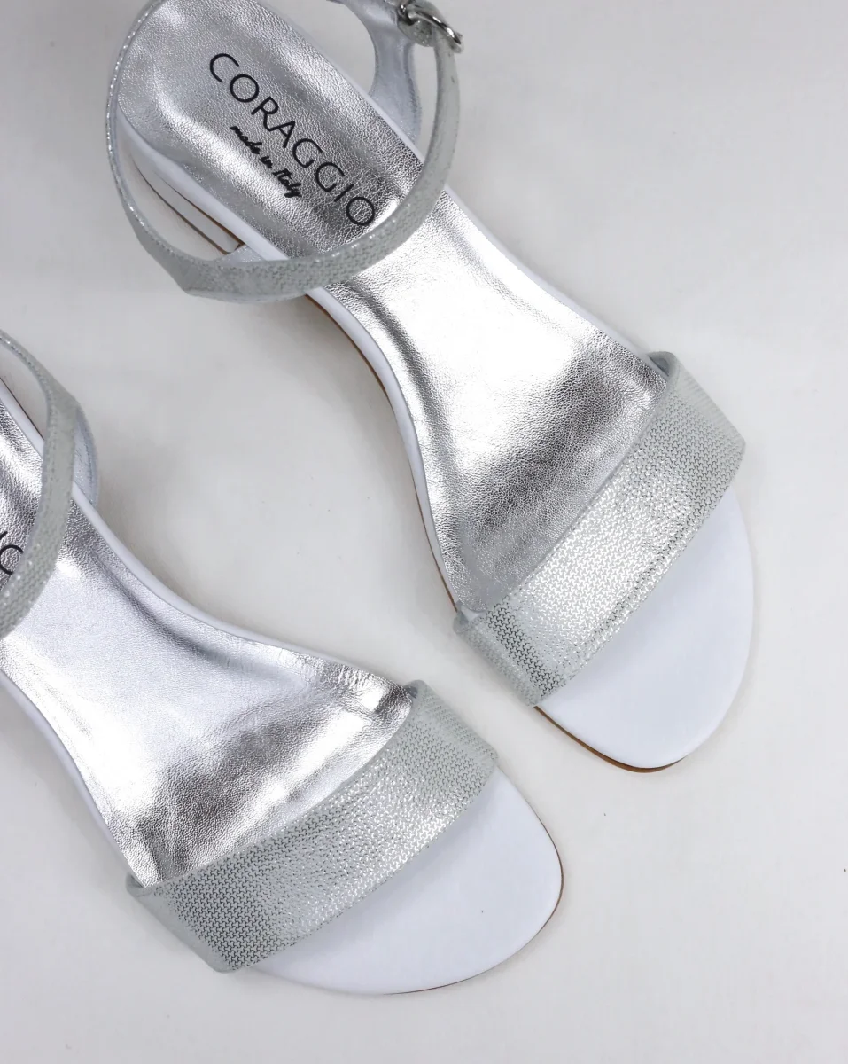 Il sandalo Daniela argento e bianco è prodotto artigianalmente in Italia, disponibile nei grandi numeri donna dal 42 al 45