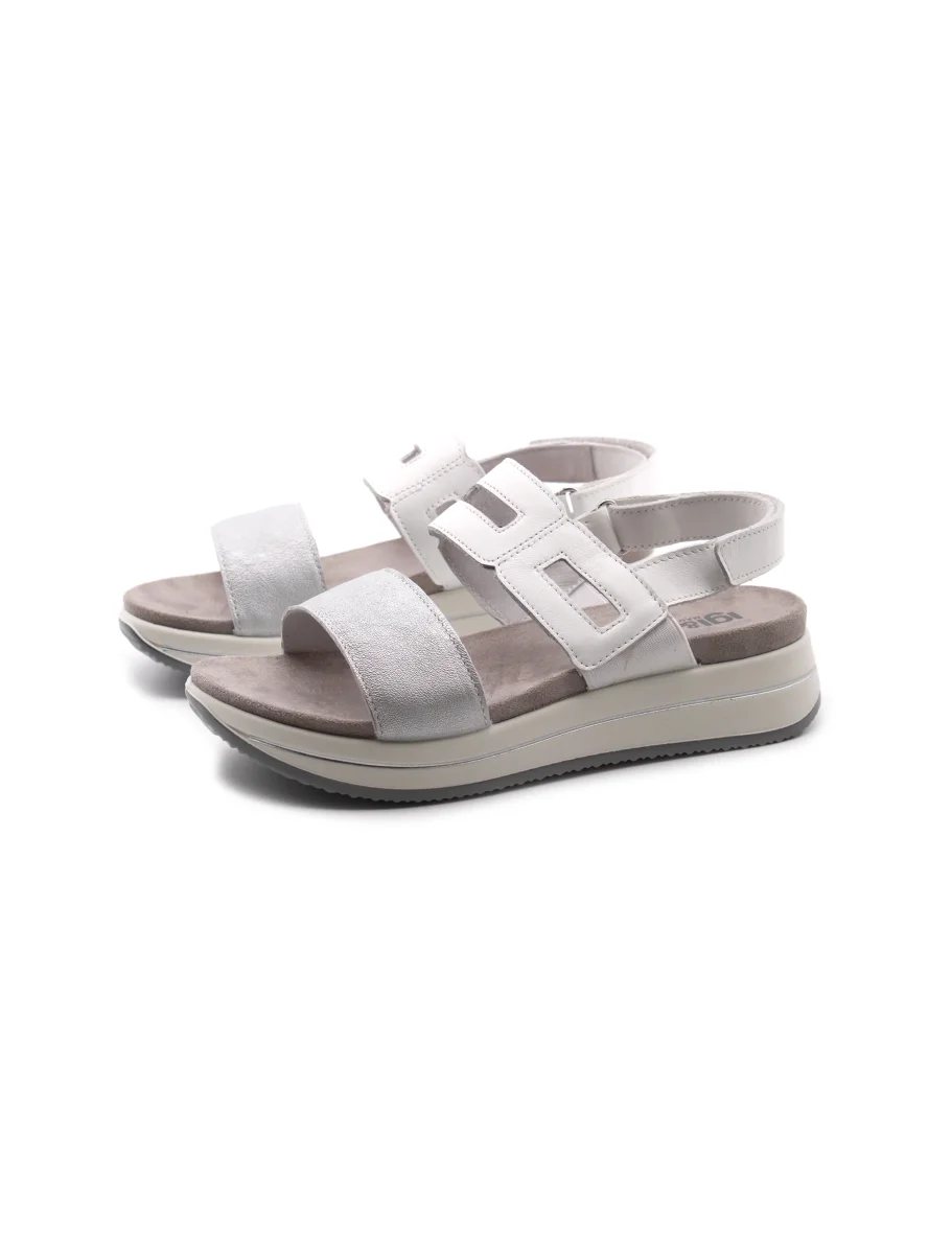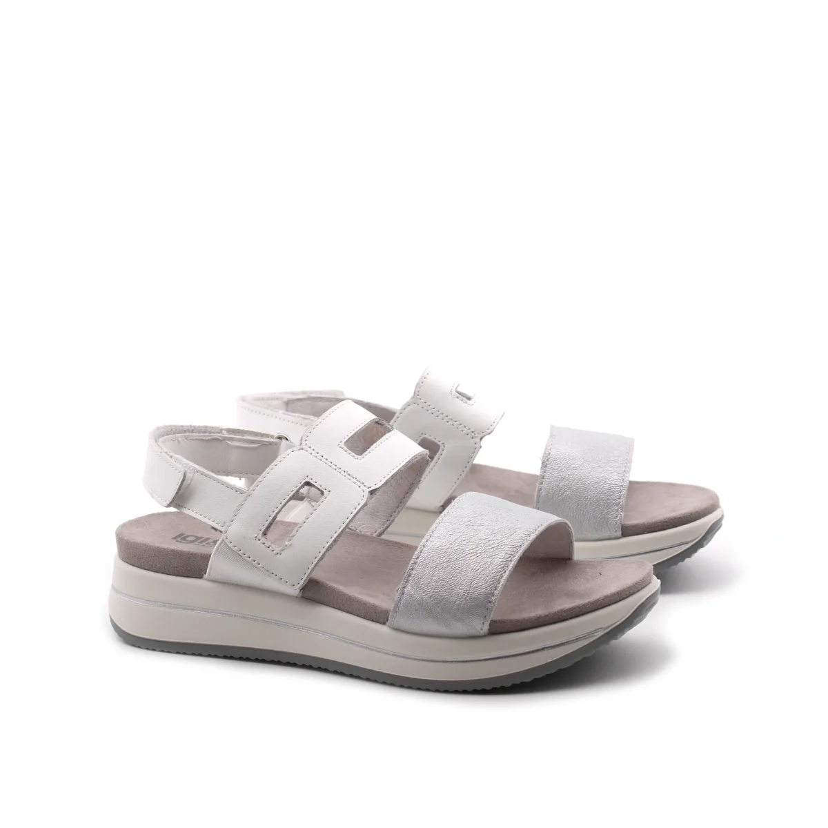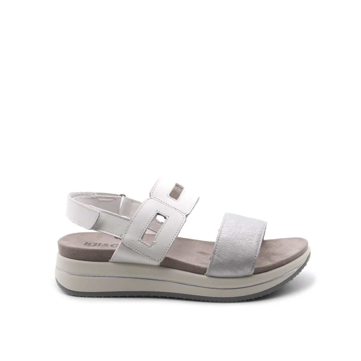 Sandalo platform da donna Igi&Co made in Italy con tomaia in vera pelle bicolore, sottopiede in tessuto, suola in gomma e pratica chiusura con velcro.