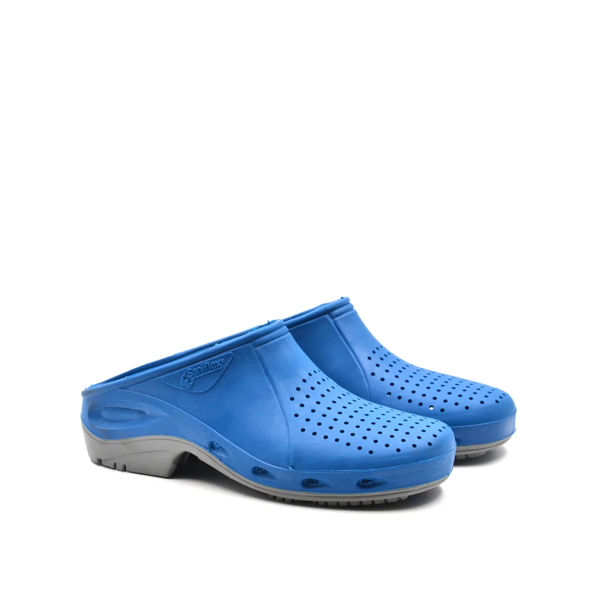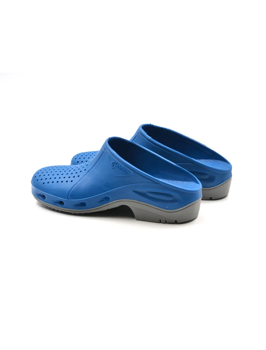 Ciabatta sanitaria da donna SaniFlex made in Italy in gomma traforata. La suola è antiscivolo e antistatica. E’ sterilizzabile in autoclave a 134°C o in lavatrice 60° e risponde ai requisiti della nuova normativa EN ISO 20347:2012 / OB A E-SRA