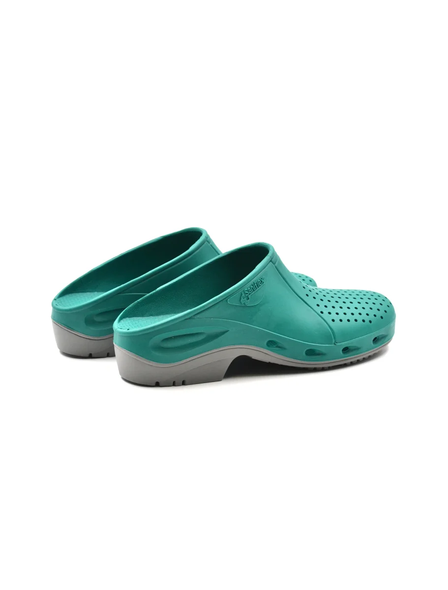 Ciabatta sanitaria da uomo SaniFlex made in Italy in gomma traforata. La suola è antiscivolo e antistatica. E’ sterilizzabile in autoclave a 134°C o in lavatrice 60° e risponde ai requisiti della nuova normativa EN ISO 20347:2012 / OB A E-SRA