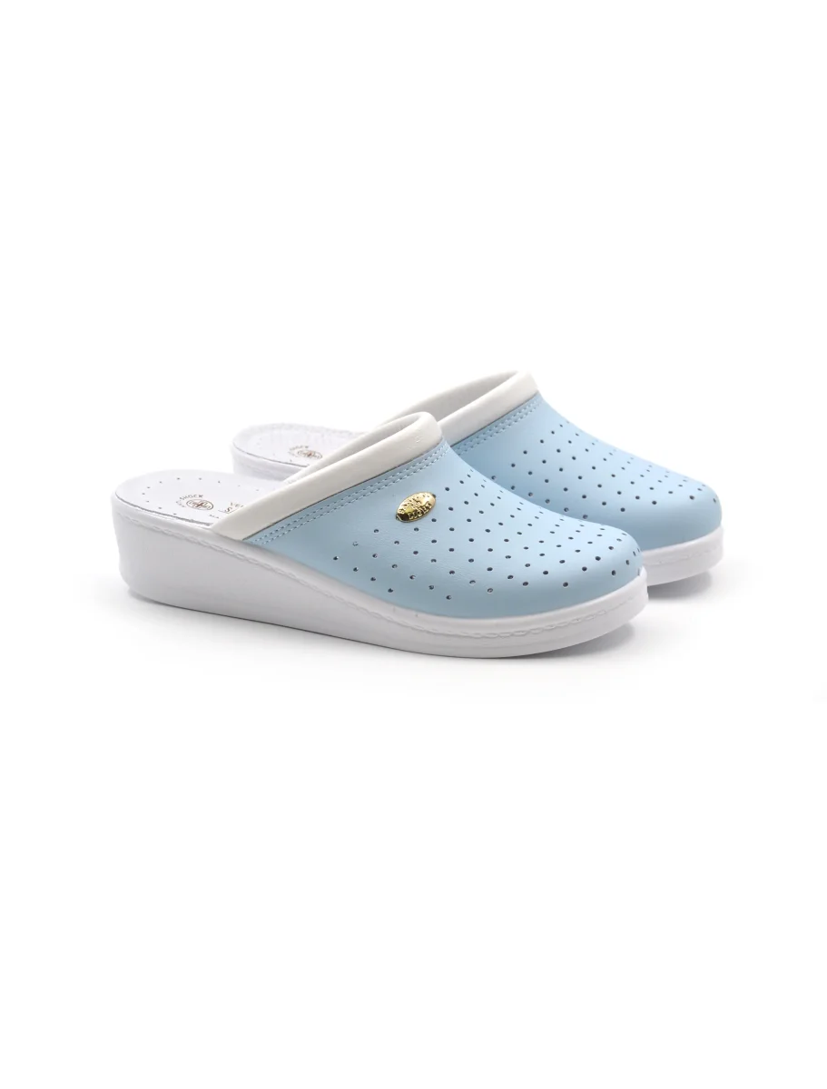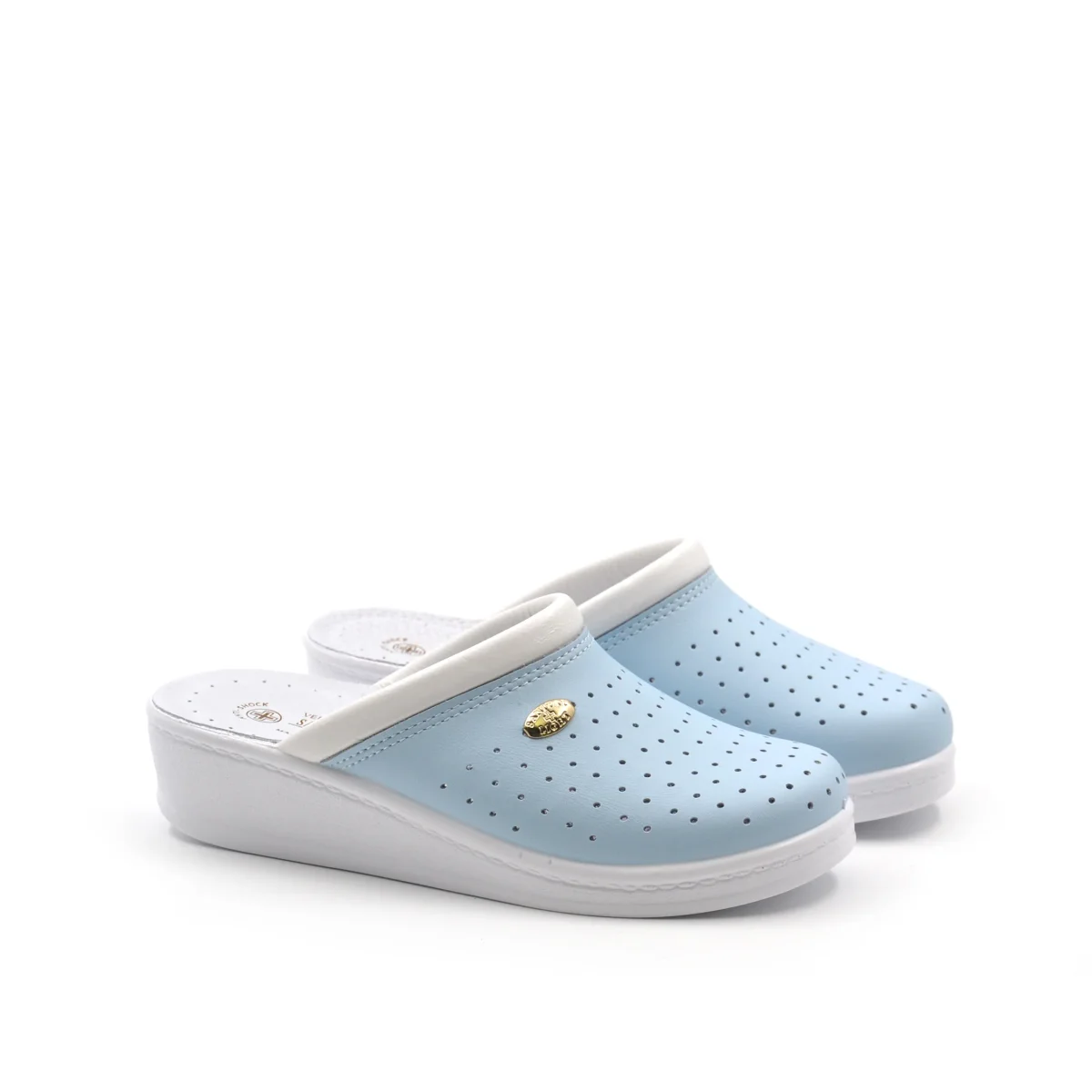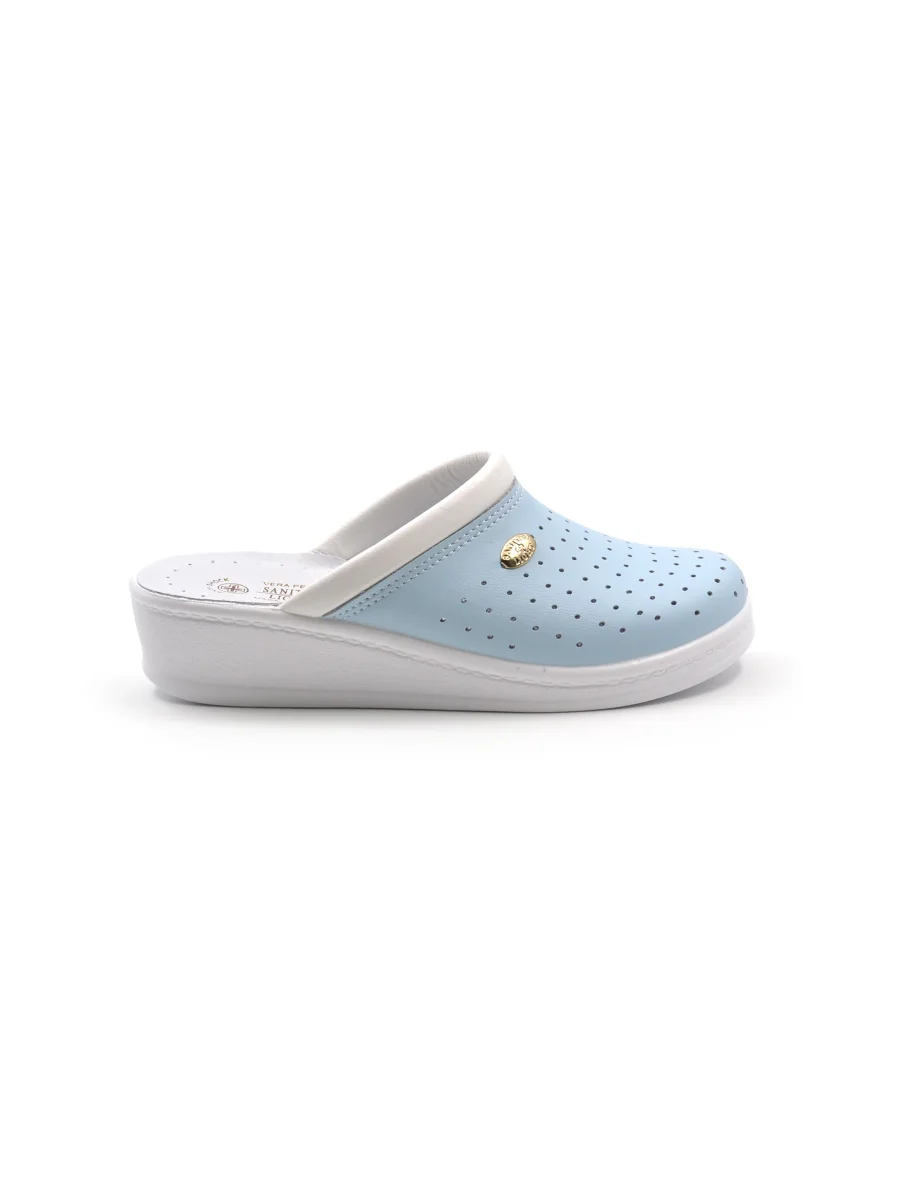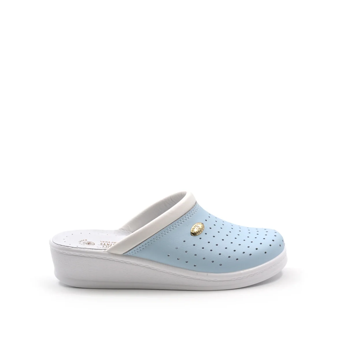Ciabatta sanitaria da donna Sanital Light made in Italy in vera pelle traforata con morbido sottopiede anatomico in pelle e fondo Anti-Shock in gomma.