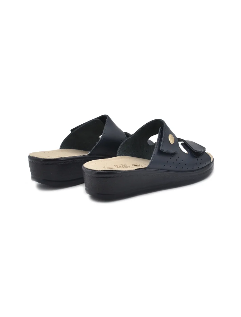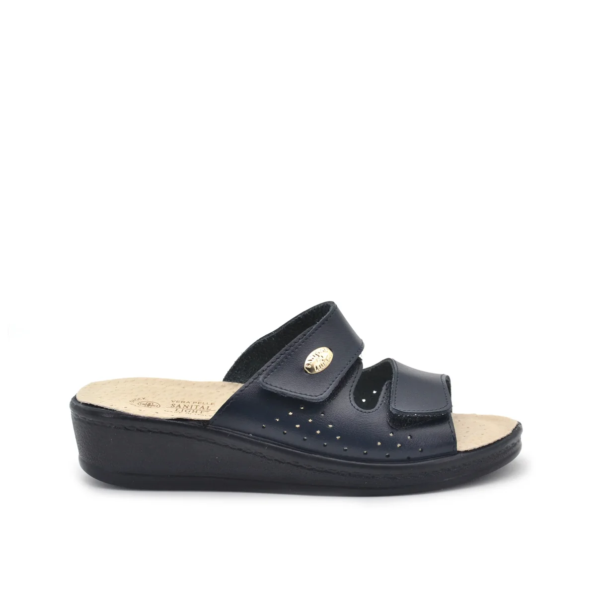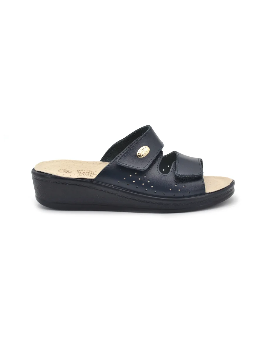 Ciabatta sanitaria a doppia fascia da donna Sanital Light made in Italy in vera pelle traforata con chiusura a velcro, morbido sottopiede anatomico in pelle e fondo in gomma.