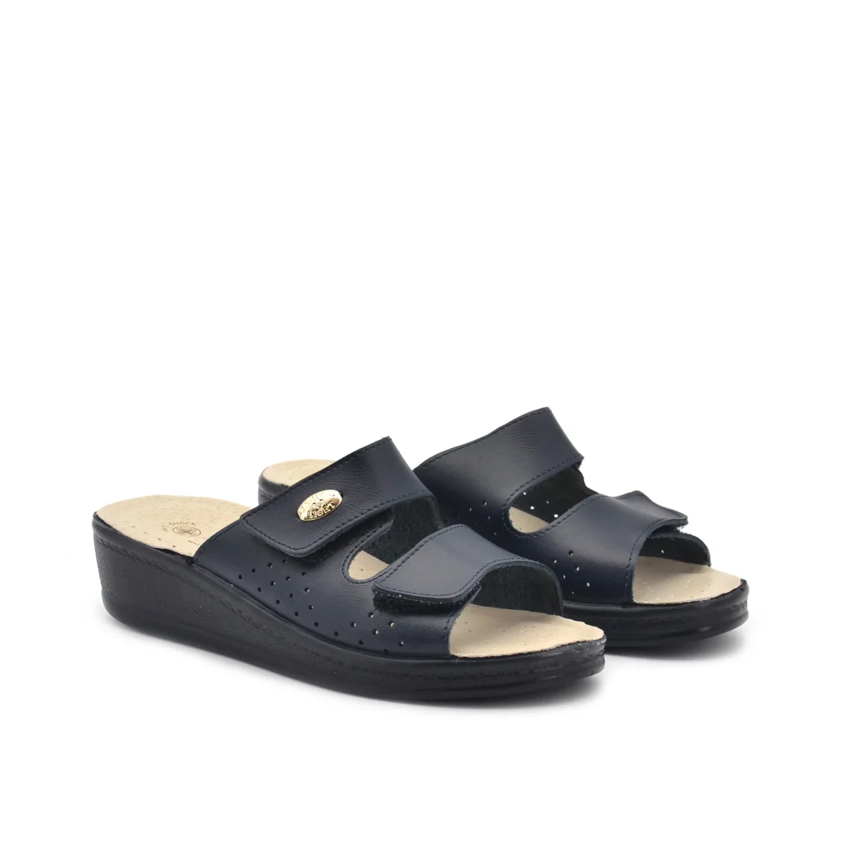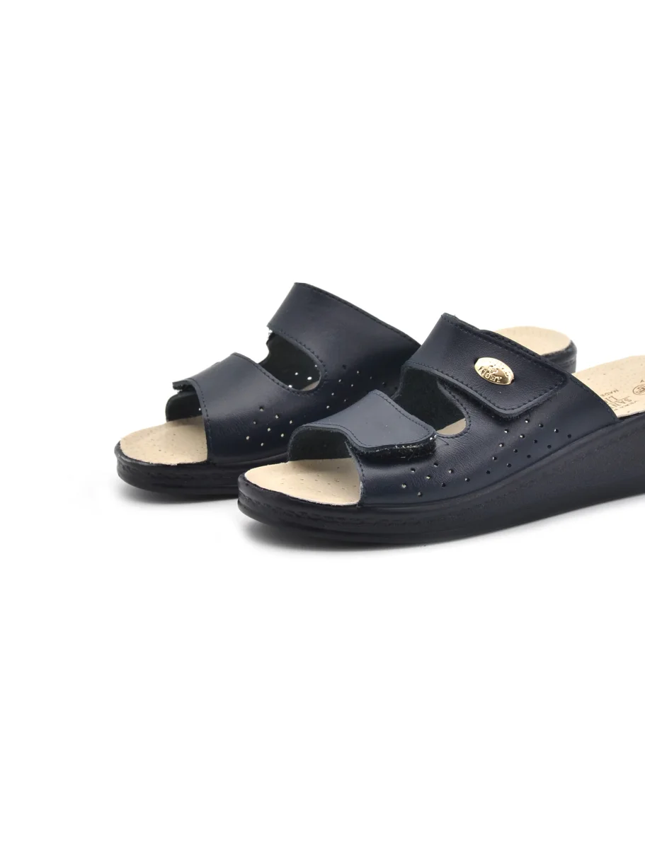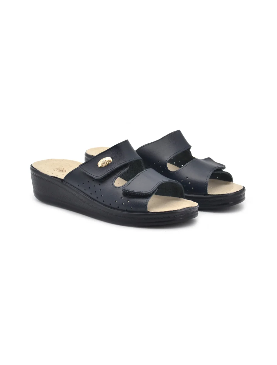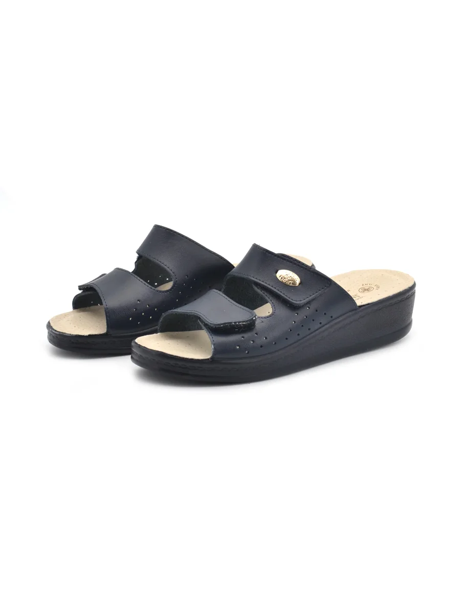 Ciabatta sanitaria a doppia fascia da donna Sanital Light made in Italy in vera pelle traforata con chiusura a velcro, morbido sottopiede anatomico in pelle e fondo in gomma.