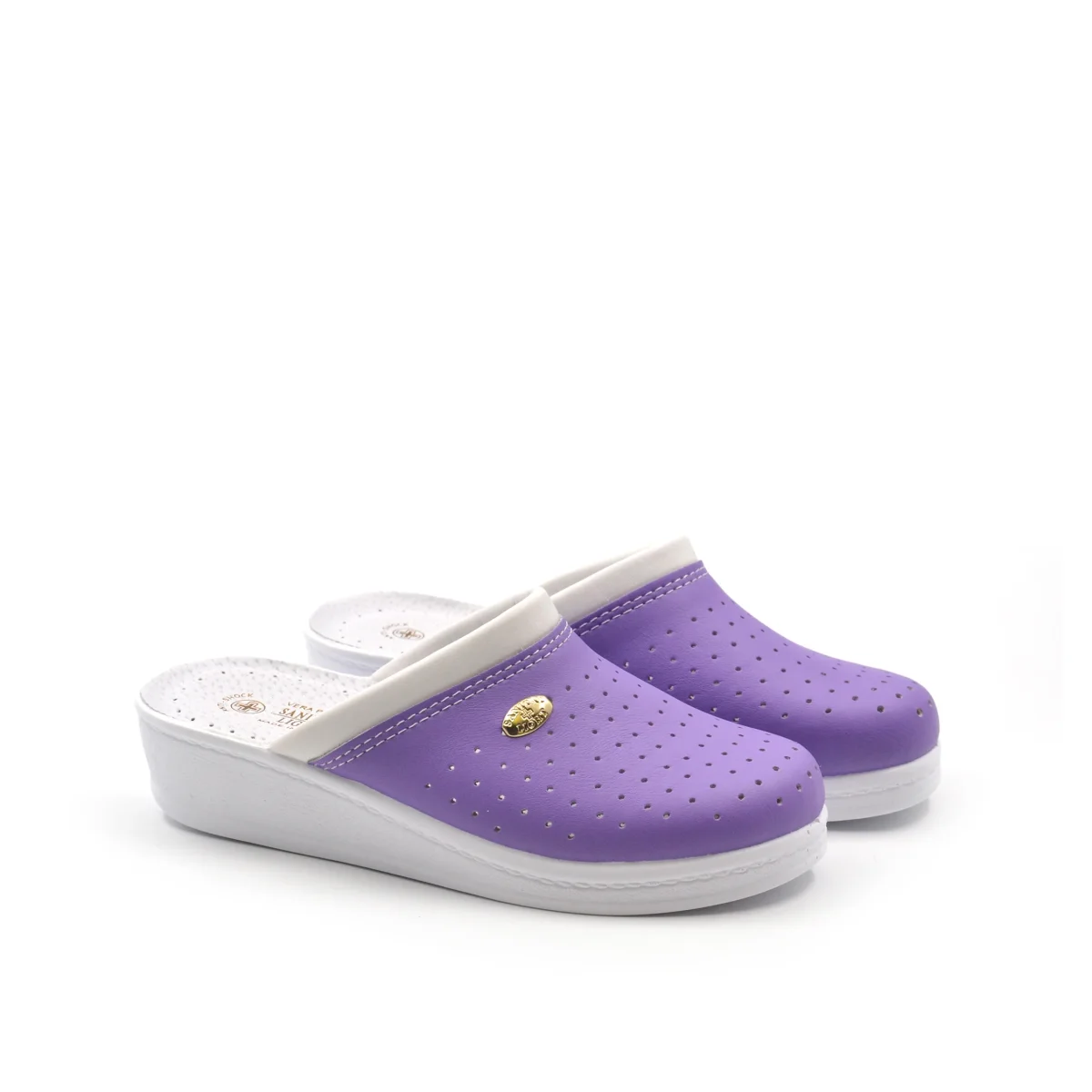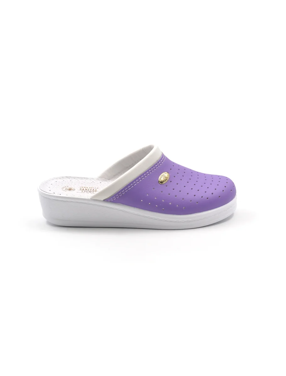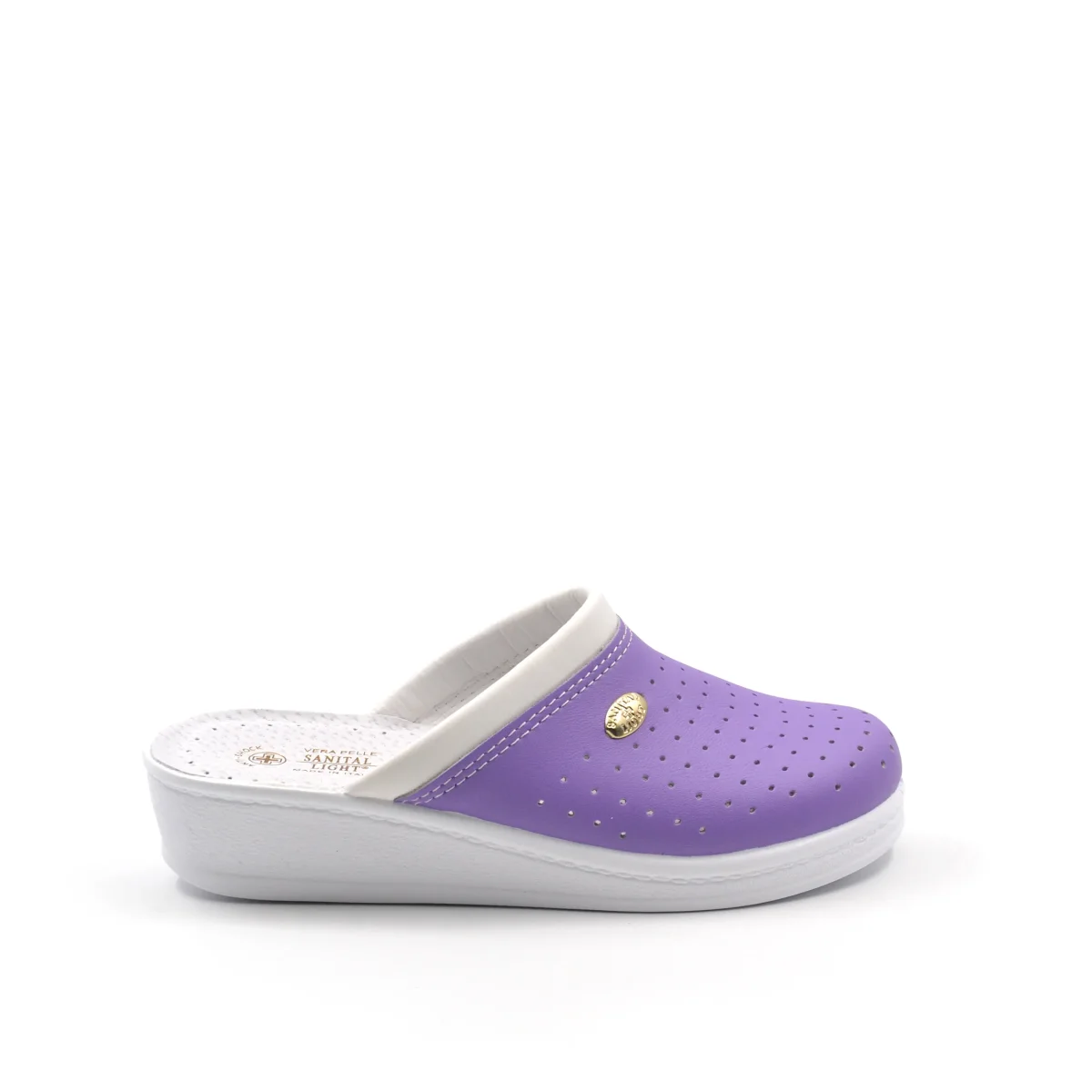 Ciabatta sanitaria da donna Sanital Light made in Italy in vera pelle traforata con morbido sottopiede anatomico in pelle e fondo Anti-Shock in gomma.