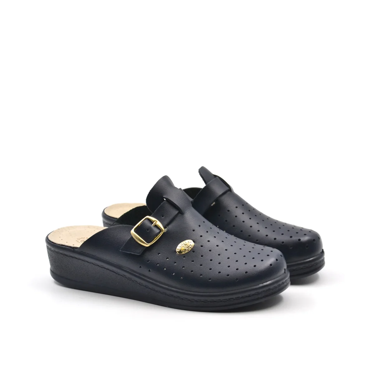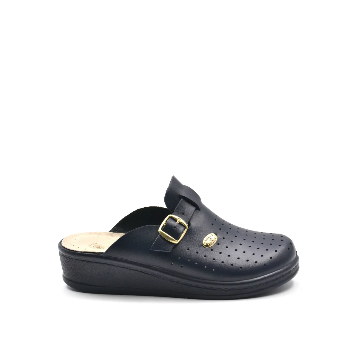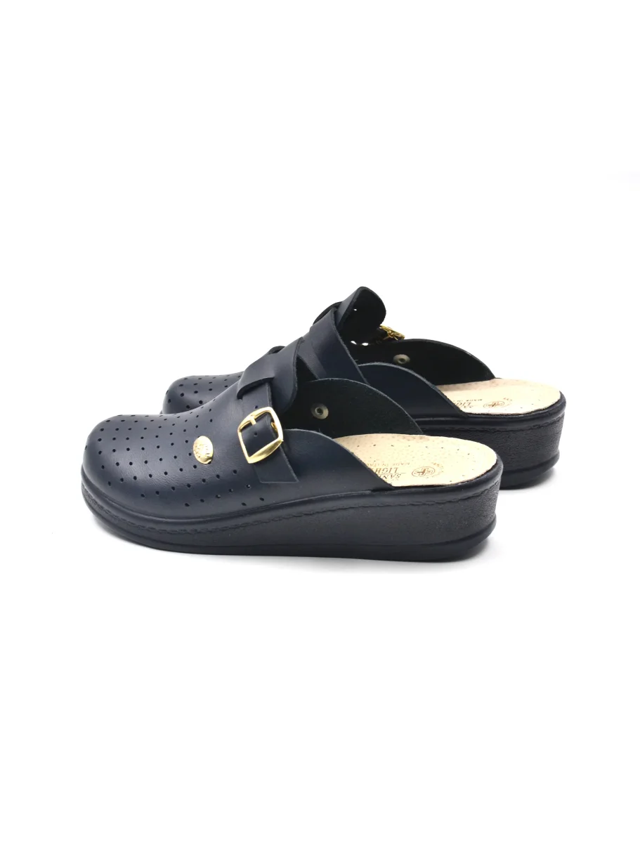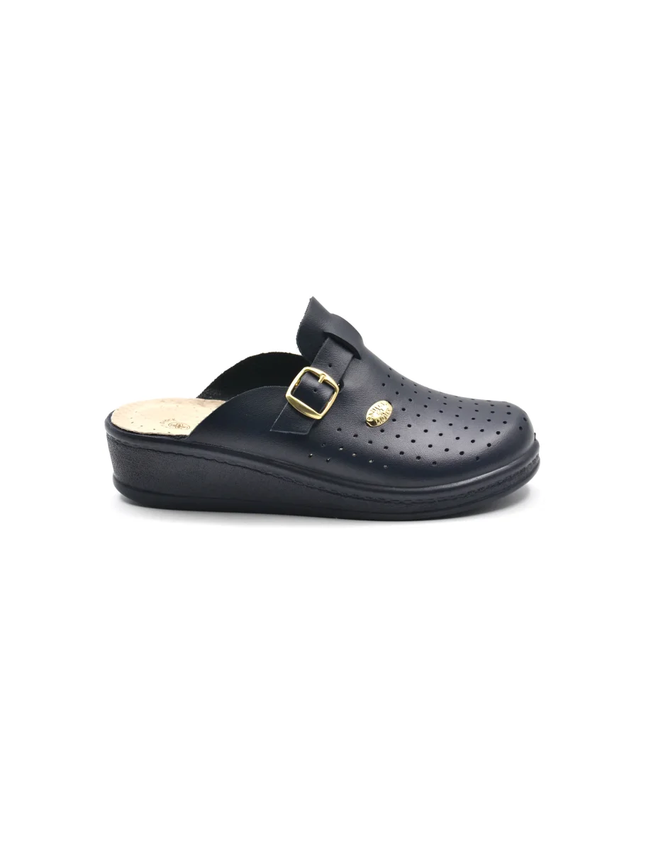 Ciabatta sanitaria da donna Sanital Light made in Italy in vera pelle traforata con fibbia laterale, morbido sottopiede anatomico in pelle e fondo Anti-Shock in gomma.