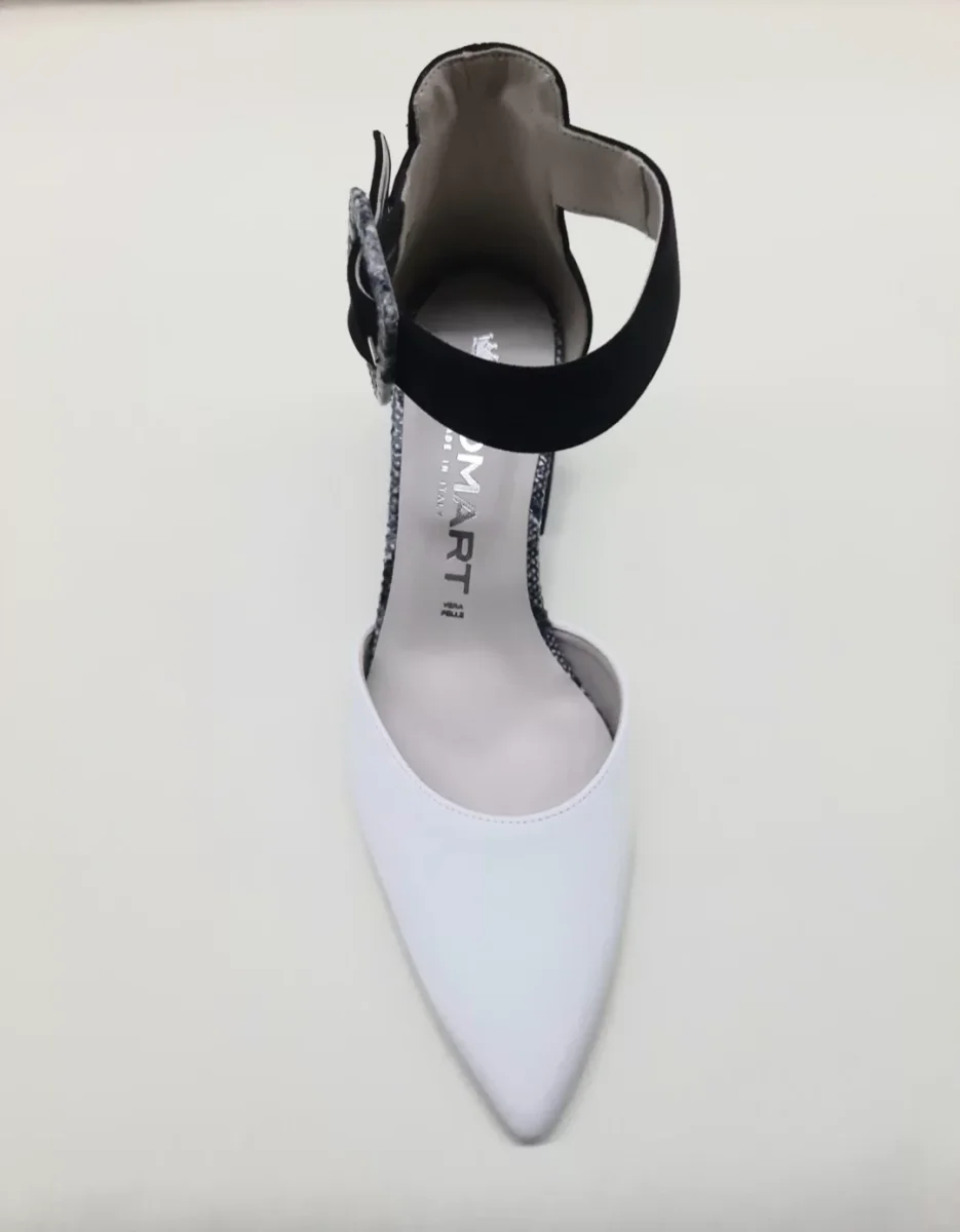 TOMAIA PUNTA IN PELLE BIANCA / TESSUTO SCAMOSCIATO NERO