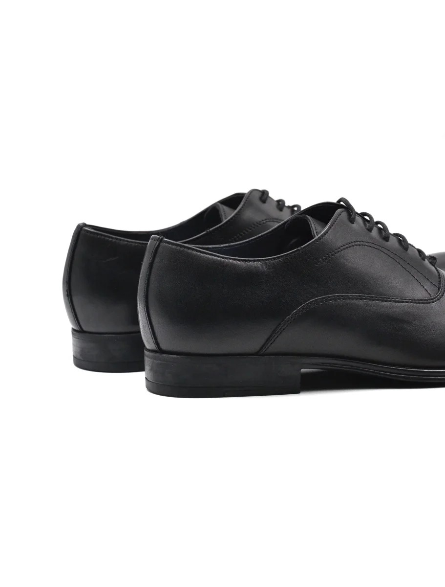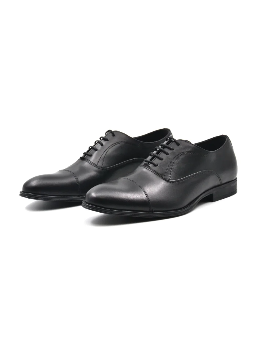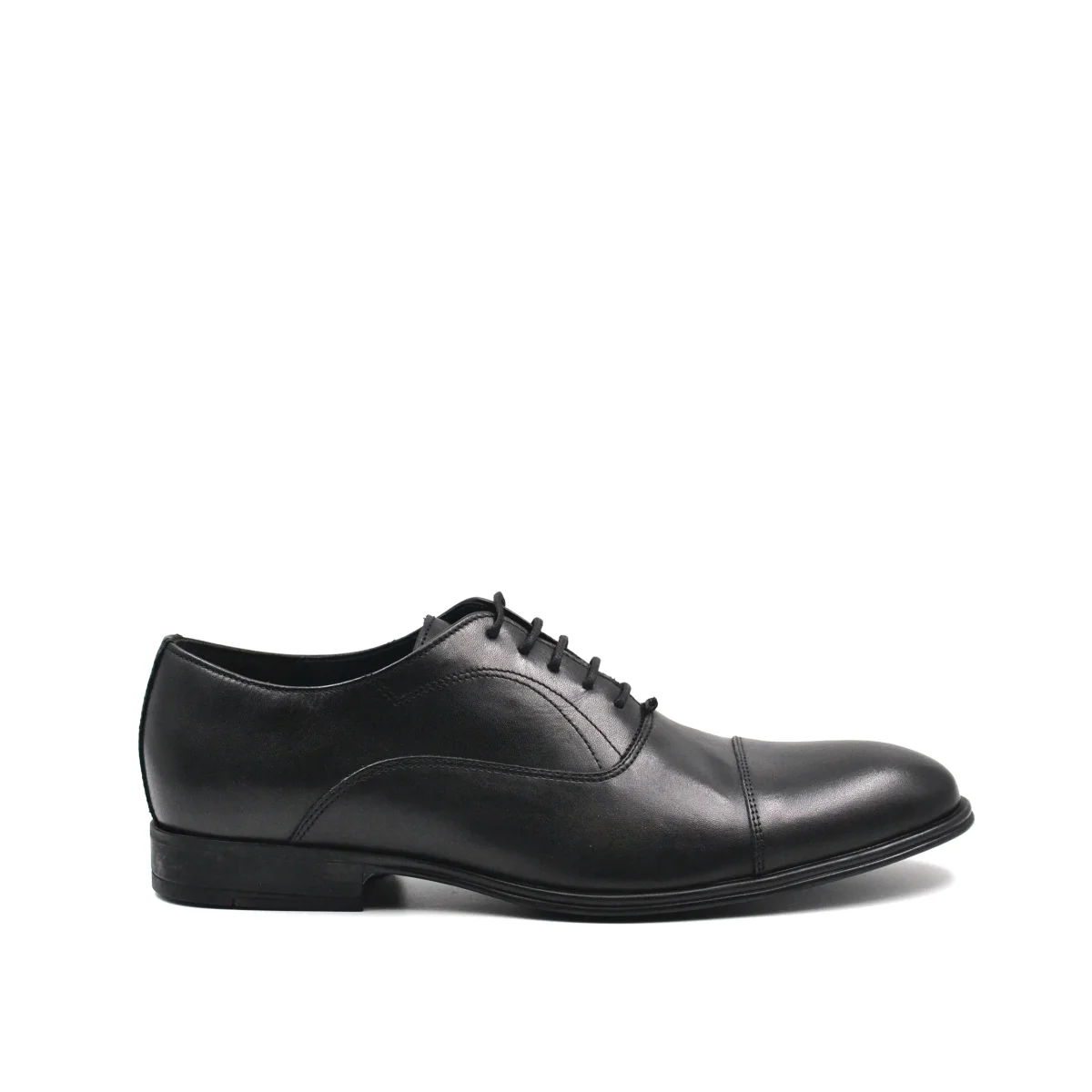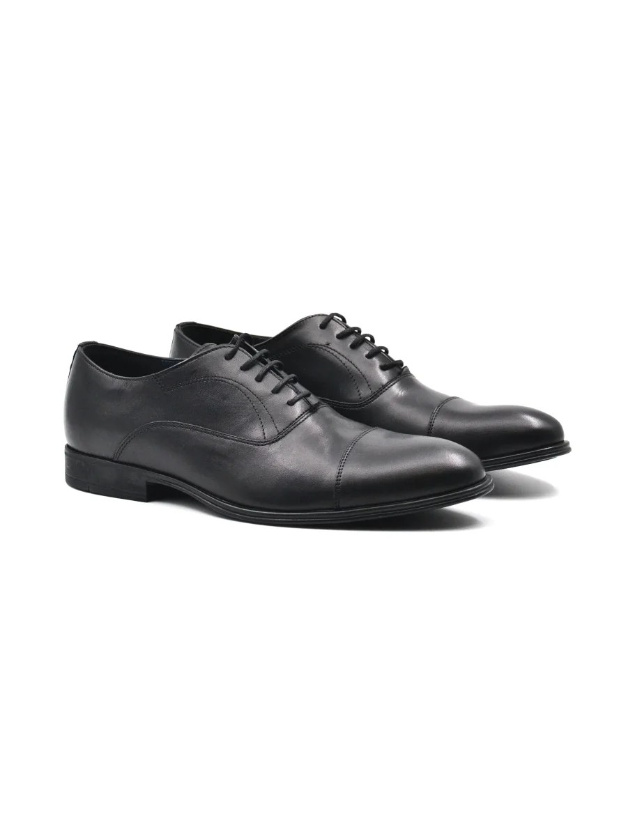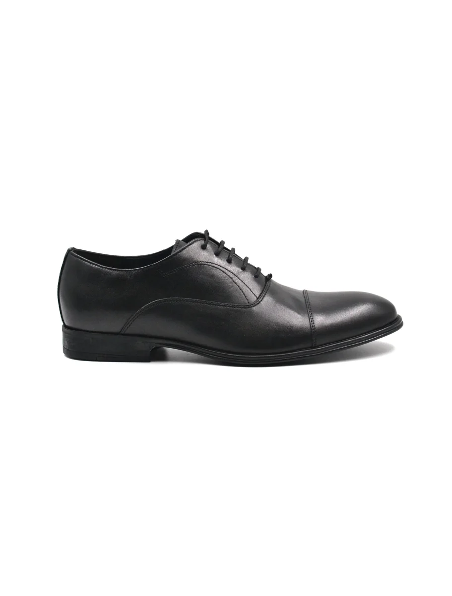 Scarpa derby da uomo ConTé in vera pelle nera con sottopiede in vera pelle e fondo in vera gomma. Dal look classico ed elegante.