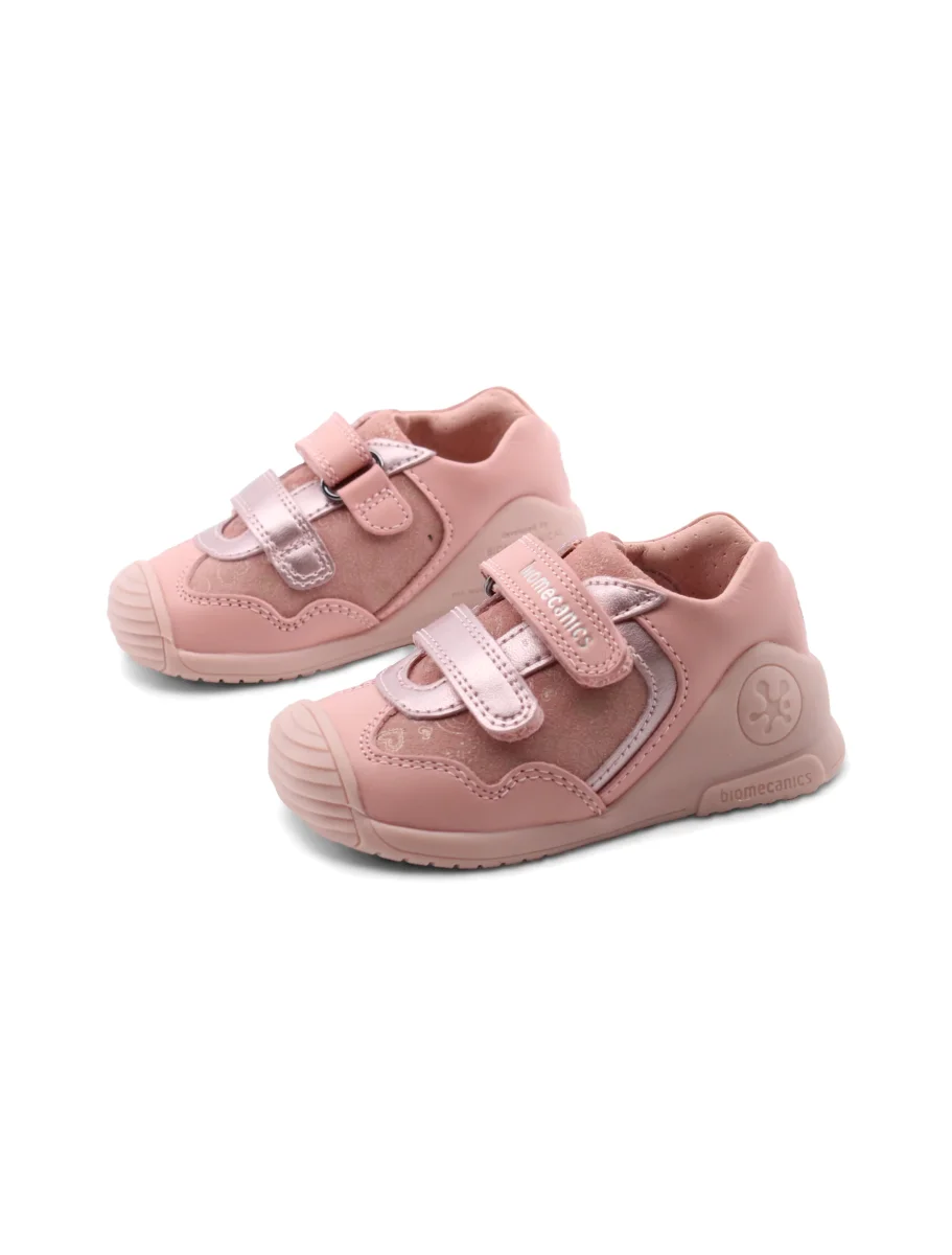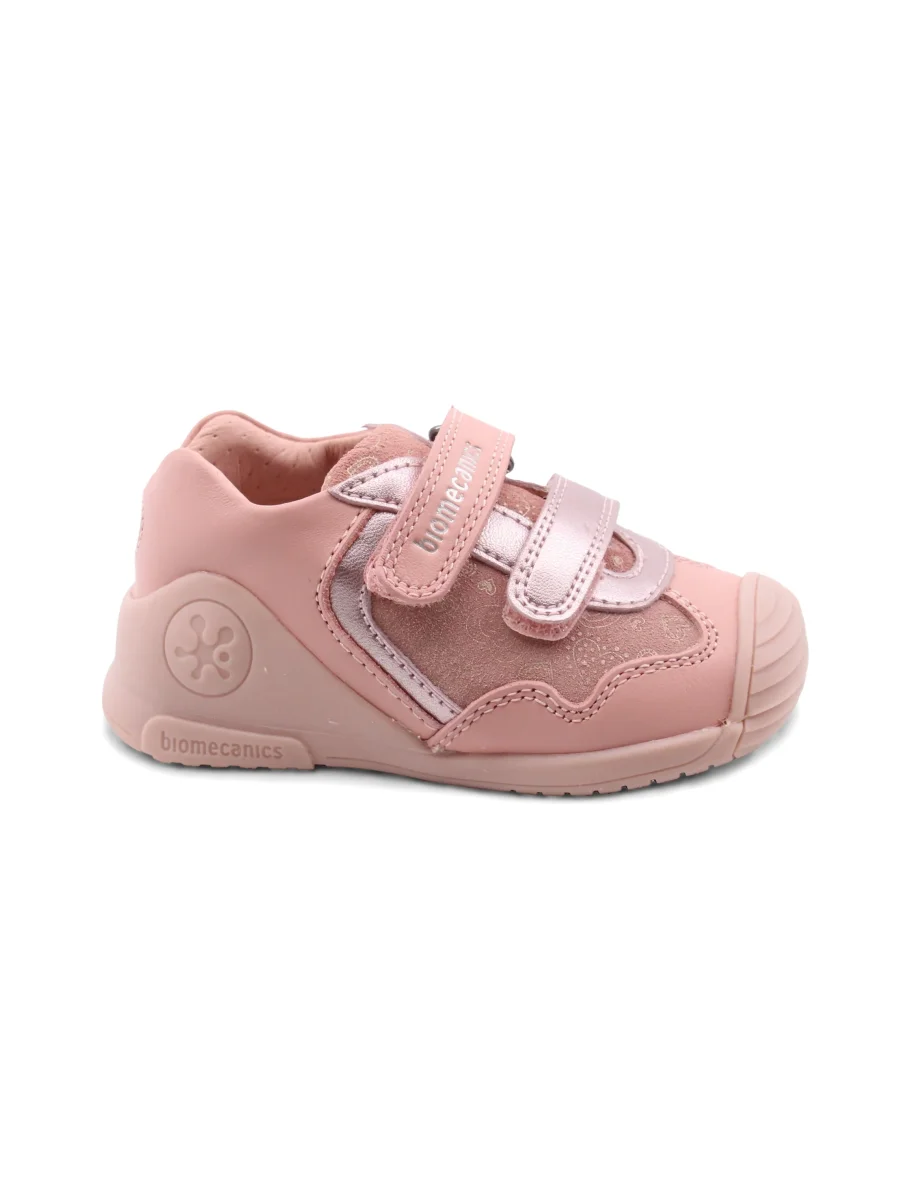Presentiamo la scarpa primi passi da bimba di Biomecanics, perfetta per accompagnare le piccole nel loro viaggio di esplorazione. La tomaia in pelle non solo garantisce un look elegante, ma offre anche una grande resistenza per affrontare ogni avventura.