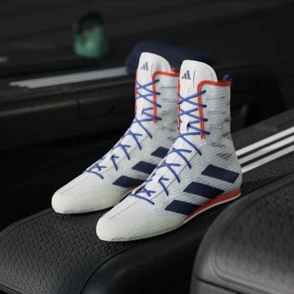 Le Scarpe da Boxe Adidas Box Hog 4 Bianco-blu sono progettate per mantenere un’intensità di allenamento elevata, senza rinunciare al comfort e alla sostenibilità . Grazie alla tomaia in mesh traspirante, arricchita da rinforzi interni, queste scarpe assicurano ventilazione e sostegno mentre ti alleni. L’intersuola (lo strato in schiuma che crea ammortizzazione) in EVA (materiale plastico a base polietilene) pretagliata offre un supporto mirato all’arco plantare, mentre la suola multidirezionale fornisce un grip eccezionale per movimenti rapidi sul ring. Realizzate con almeno il 50% di materiali riciclati, le Box Hog 4 non solo elevano le tue prestazioni ma contribuiscono anche alla lotta contro l’inquinamento da plastica. Calzata regolare, chiusura con lacci e suola in gomma.