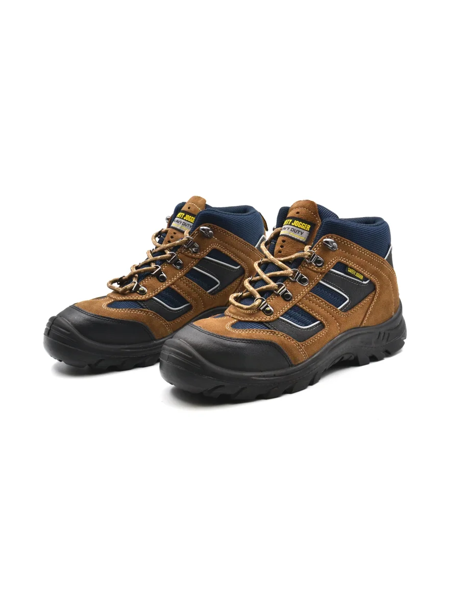 Scarpe antinfortunische da lavoro da uomo Safety Jogger S3 SRC in vera pelle e tessuto con puntale rinforzato, lamina nella suola antiforatura, antistatica, antiscivolo, repellente all’acqua.