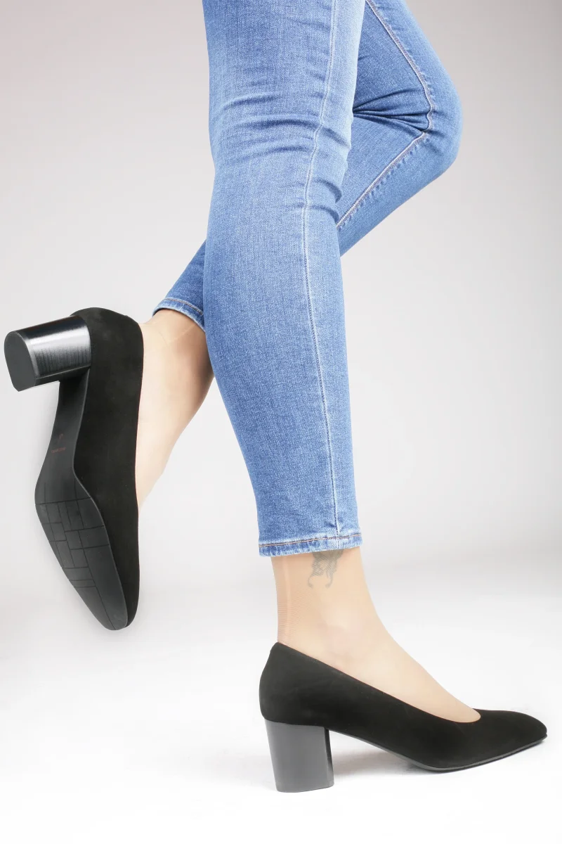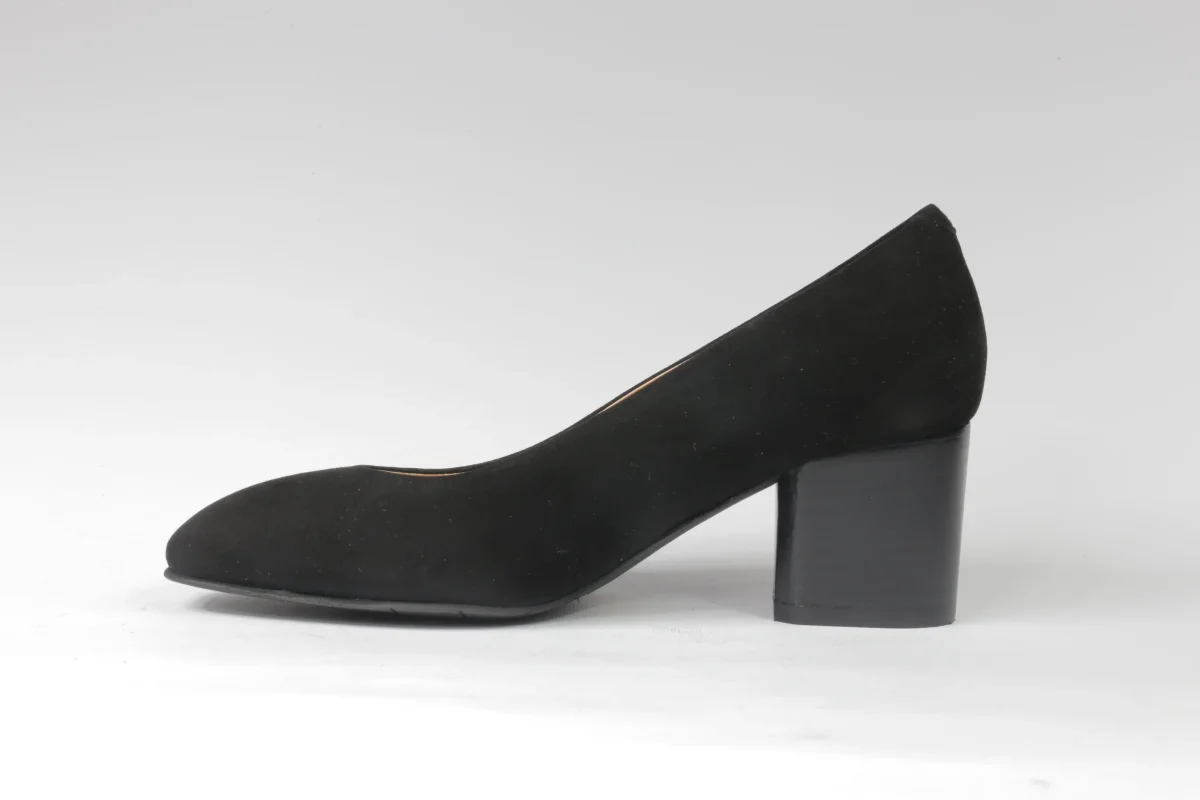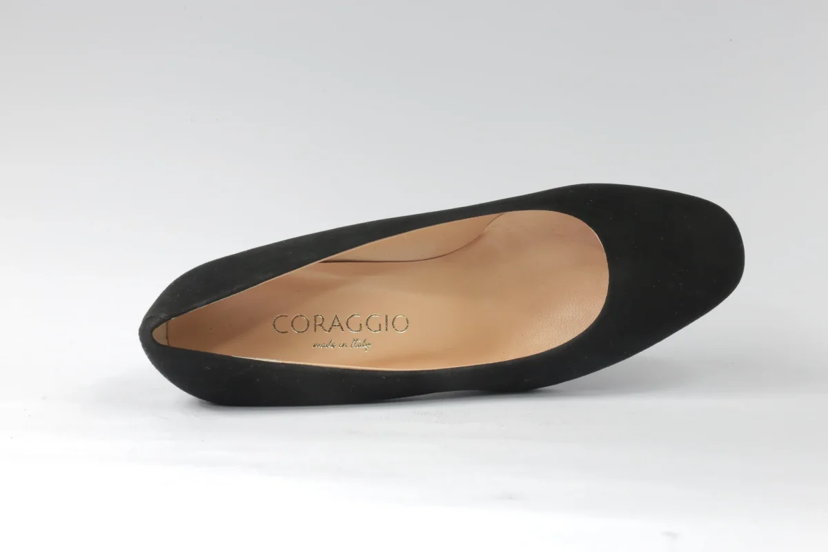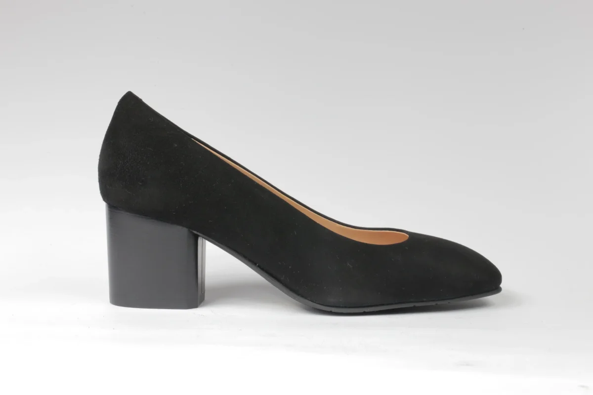Decolléte da donna a punta in morbido camoscio nero, il tacco varia a seconda del numero di scarpa per mantenere la proporzione. Per avere la misura esatta del tacco contattateci. Disponibili numeri grandi e piccoli, è disponibile lo stesso modello anche in pelle di colore marrone. Artigianalità di qualità italiana.