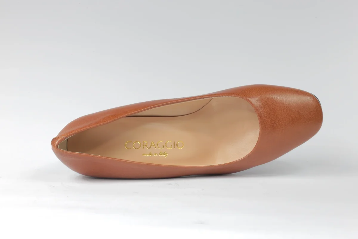 Décolleté da donna a punta in morbida pelle marrone, punta arrotondata, il tacco varia a seconda del numero di scarpa per mantenere la proporzione. Per avere la misura esatta del tacco contattateci. Disponibili numeri grandi e piccoli, è disponibile lo stesso modello anche in camoscio di colore nero. Artigianalità di qualità italiana.