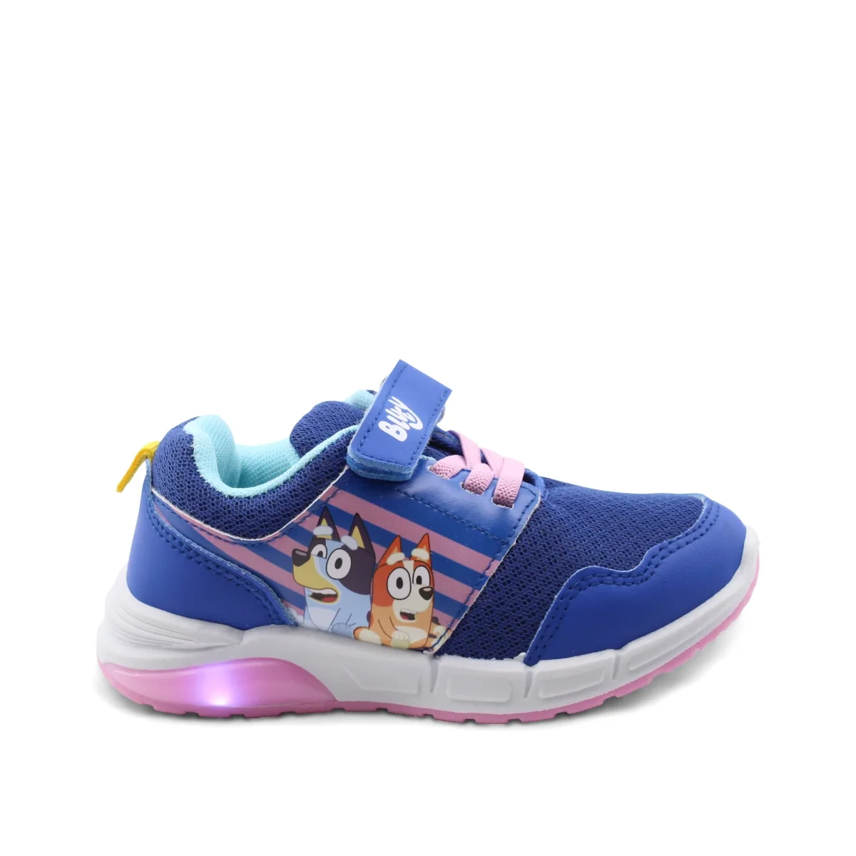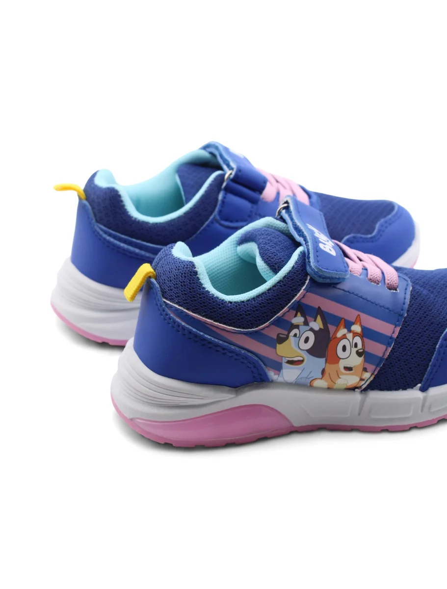 Le sneaker con luci Bluey sono pensate per le piccole avventuriere che vogliono essere comode senza rinunciare a un tocco di stile. La chiusura con velcro e i lacci elastici rendono facile infilarle e toglierle, perfette per le giornate piene di attività . Non c’è bisogno di perdere tempo con nodi complicati!