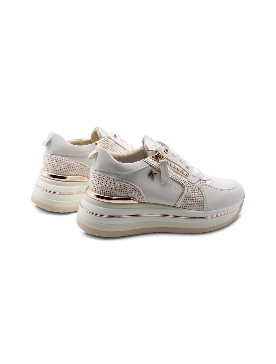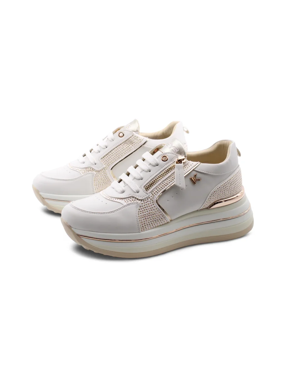 Le sneaker platform con strass da donna di Keys combinano praticità e stile in modo semplice ma efficace. La chiusura con lacci e zip garantisce una calzata precisa e veloce da indossare, perfetta per chi ama muoversi senza perdere tempo. All’interno, la fodera in pelle e tessuto assicura comfort e una buona traspirabilità , mantenendo il piede fresco durante tutta la giornata. Il plantare removibile dà la possibilità di personalizzare la scarpa o sostituirlo facilmente, un dettaglio che fa la differenza per chi cerca flessibilità . Il plateau alto 4 cm e il tacco da 6 cm regalano la giusta dose di slancio senza rinunciare alla comodità , ideale per chi vuole sentirsi alta ma stabile. Infine, il sottopiede in pelle aggiunge un tocco di qualità e morbidezza sotto il piede, rendendo queste sneaker una scelta affidabile per chi non vuole rinunciare alla comodità anche con un tocco di originalità .