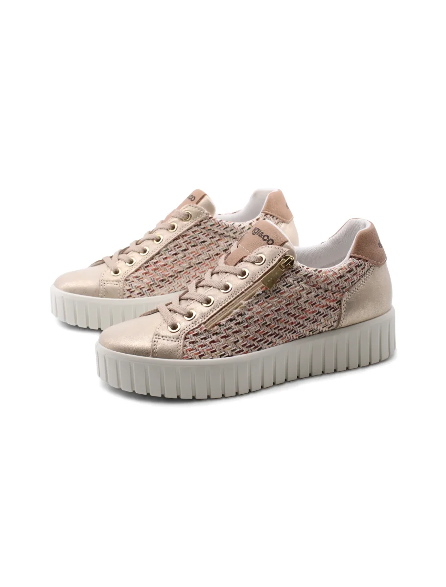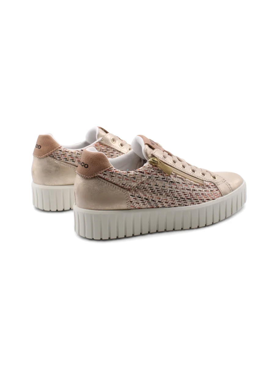 Queste sneaker platform da donna uniscono stile e comfort per chi cerca una calzatura versatile e di qualità . La tomaia in pelle e tessuto garantisce resistenza e un tocco di freschezza, perfetta per l’uso quotidiano. All’interno, la fodera in tessuto assicura una sensazione morbida e traspirante sul piede, mantenendo la scarpa leggermente ariosa.