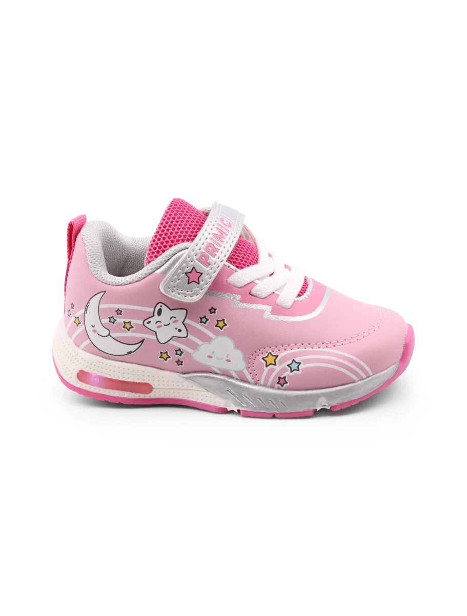 Presentiamo le sneakers primi passi di Primigi, pensate per le piccole esploratrici! La chiusura con velcro e lacci elastici assicura una calzata rapida e sicura, così la tua bimba può indossarle e toglierle senza problemi, anche quando è in movimento. La fodera in tessuto garantisce comfort e traspirabilità , mantenendo i piedini freschi e felici durante le avventure quotidiane.