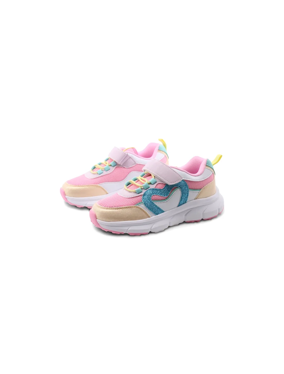 La suola in gomma assicura una buona presa su diverse superfici, offrendo stabilità e sicurezza passo dopo passo. Nel complesso, questa sneaker è pensata per accompagnare le bimbe con stile e facilità durante le loro giornate attive.