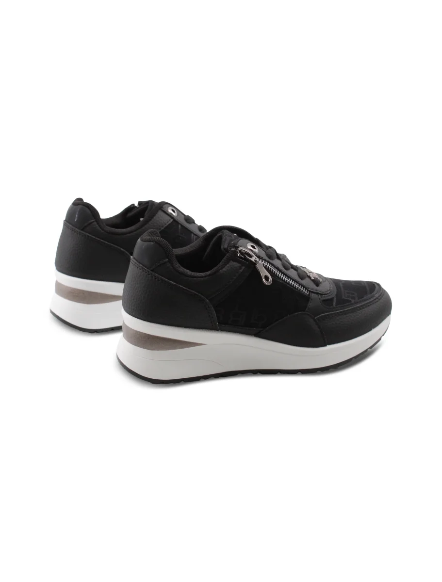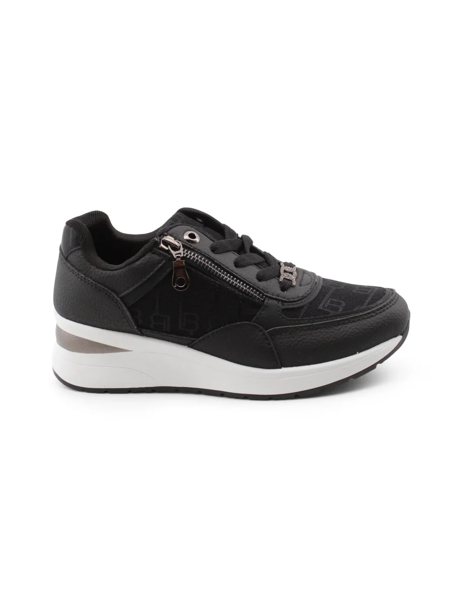 Semplice ma con stile, la sneaker zeppa con glitter da donna di Laura Biagiotti è la scelta perfetta per chi cerca comfort e un tocco di originalità . La chiusura combinata di lacci e zip non solo rende l’uso super pratico, ma aggiunge un pizzico di carattere al tuo look quotidiano.