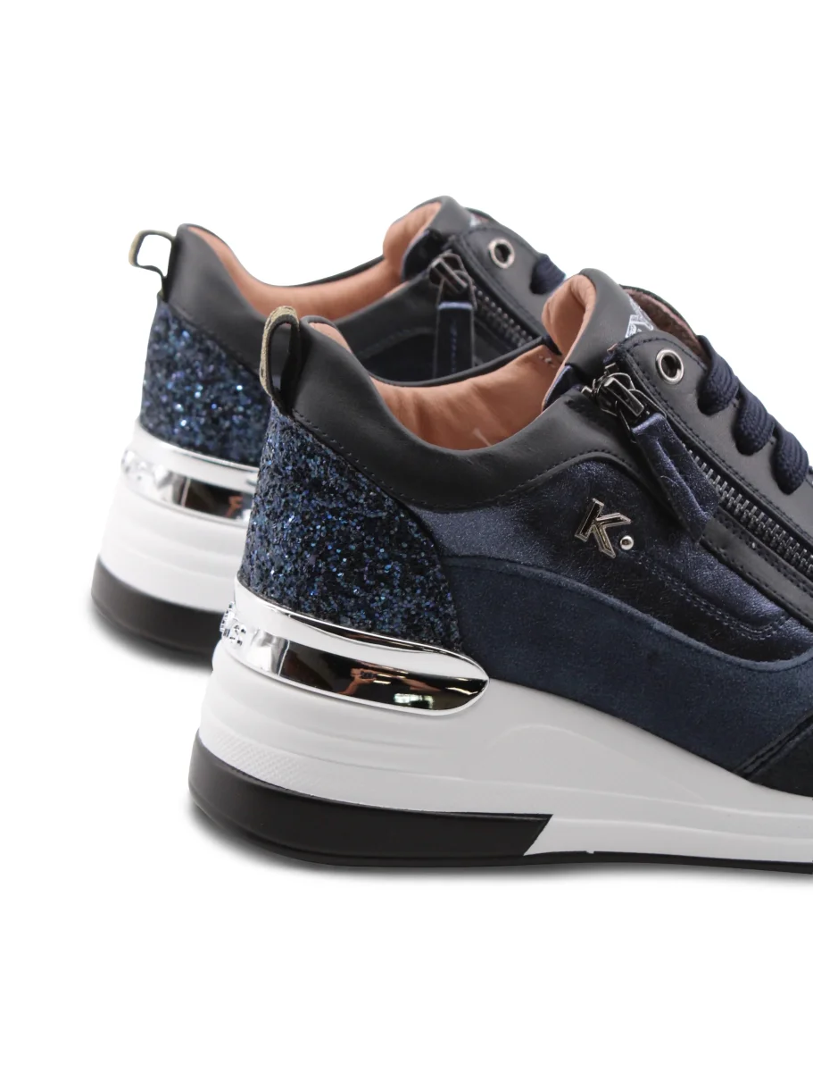 Queste sneaker con zeppa sono un mix perfetto di stile e praticità . La chiusura con doppia zip e lacci rende l’indossarle un gioco da ragazzi, così non perderai tempo quando sei di corsa. La fodera in pelle e tessuto ti avvolge i piedi in un abbraccio confortevole, ideale per affrontare la giornata senza pensieri.
