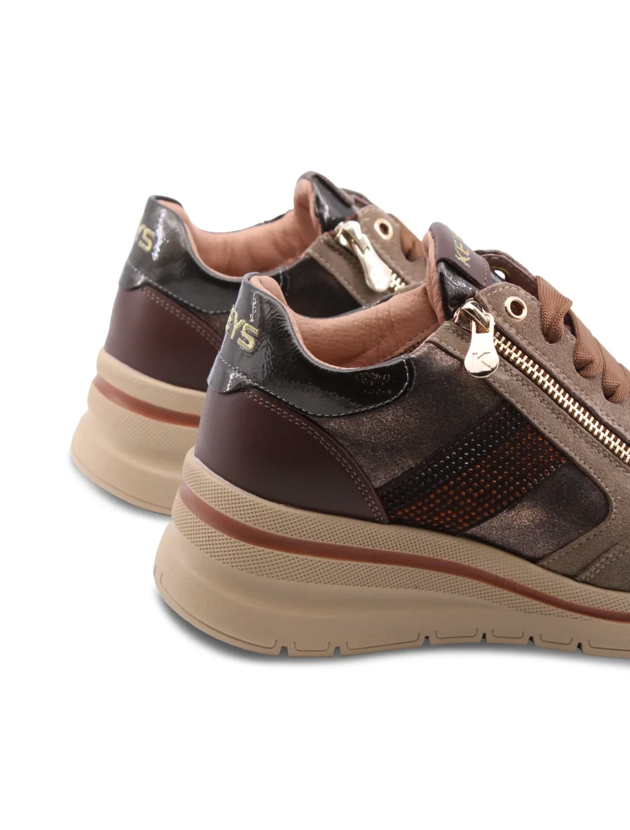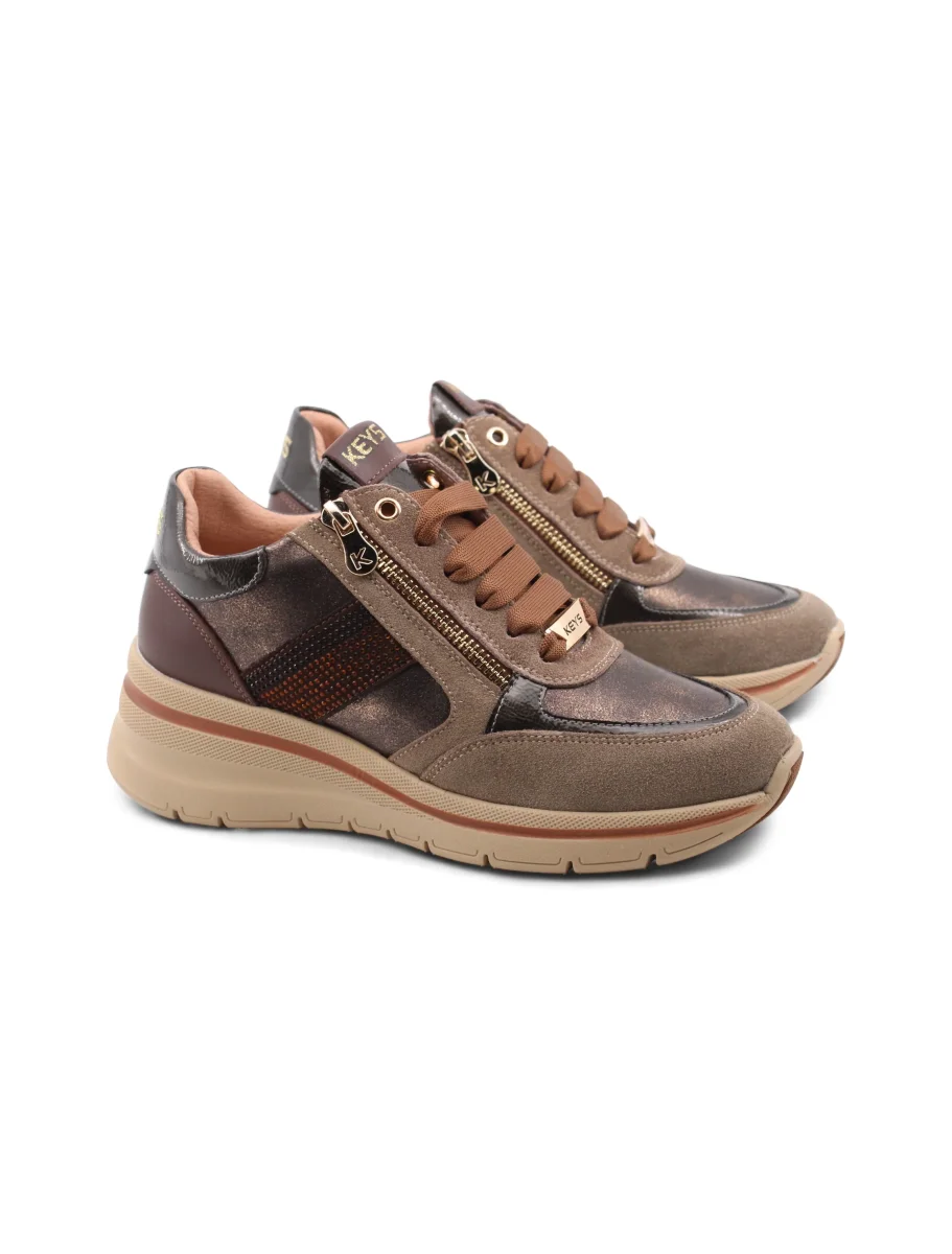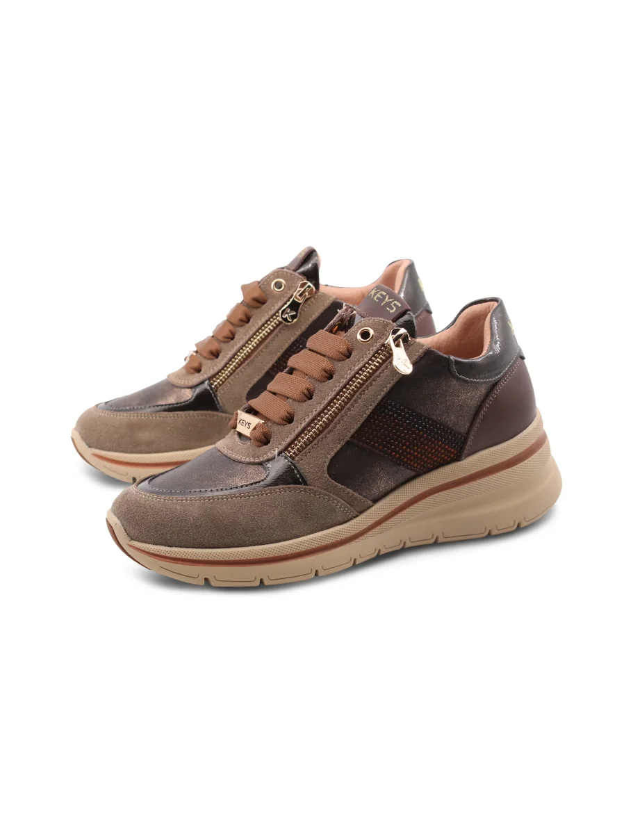 Le sneaker zeppa con strass da donna di Keys sono l’ideale per chi cerca comfort e stile senza compromessi. La chiusura è semplice e pratica, con lacci e zip, permettendoti di indossarle e toglierle in un attimo.