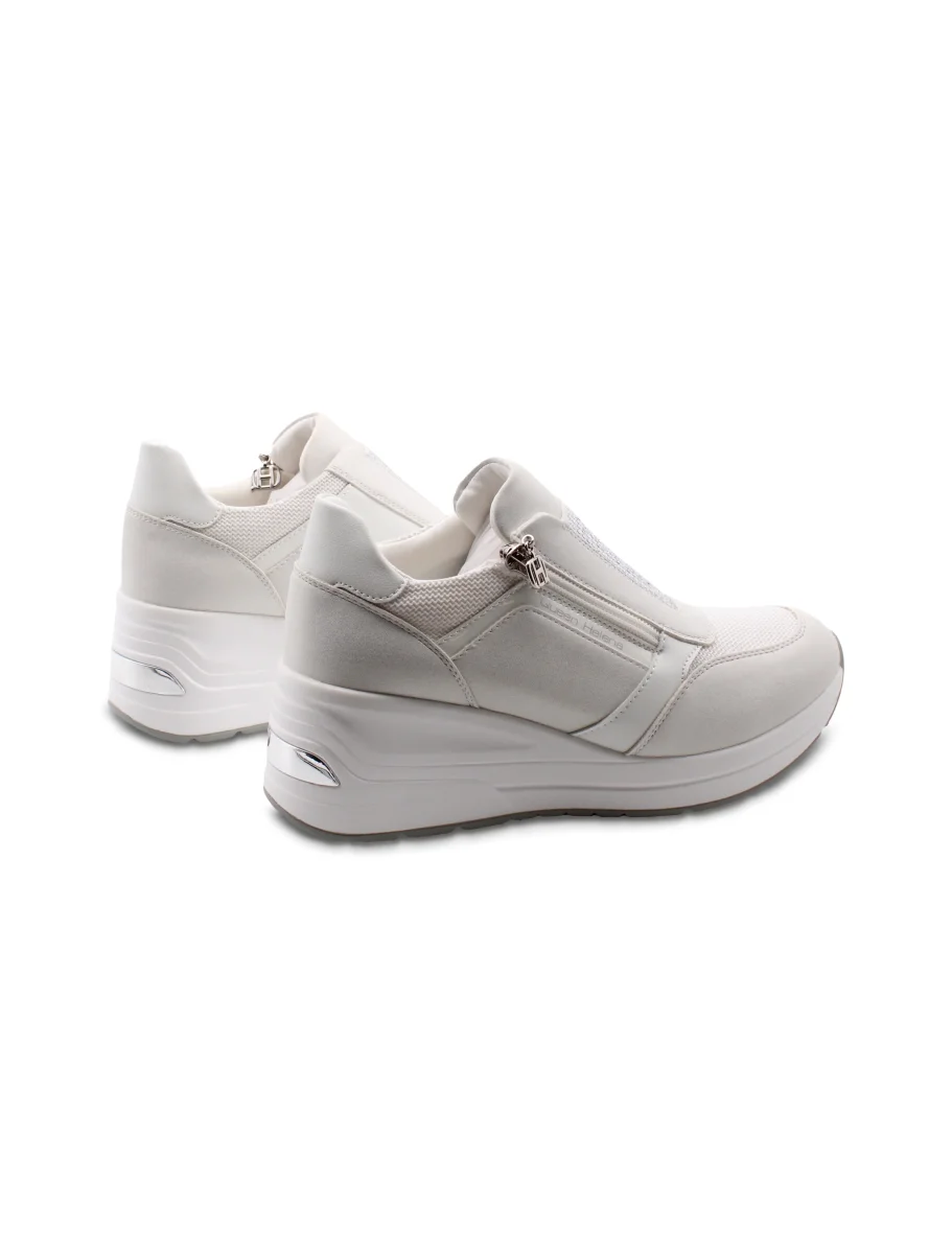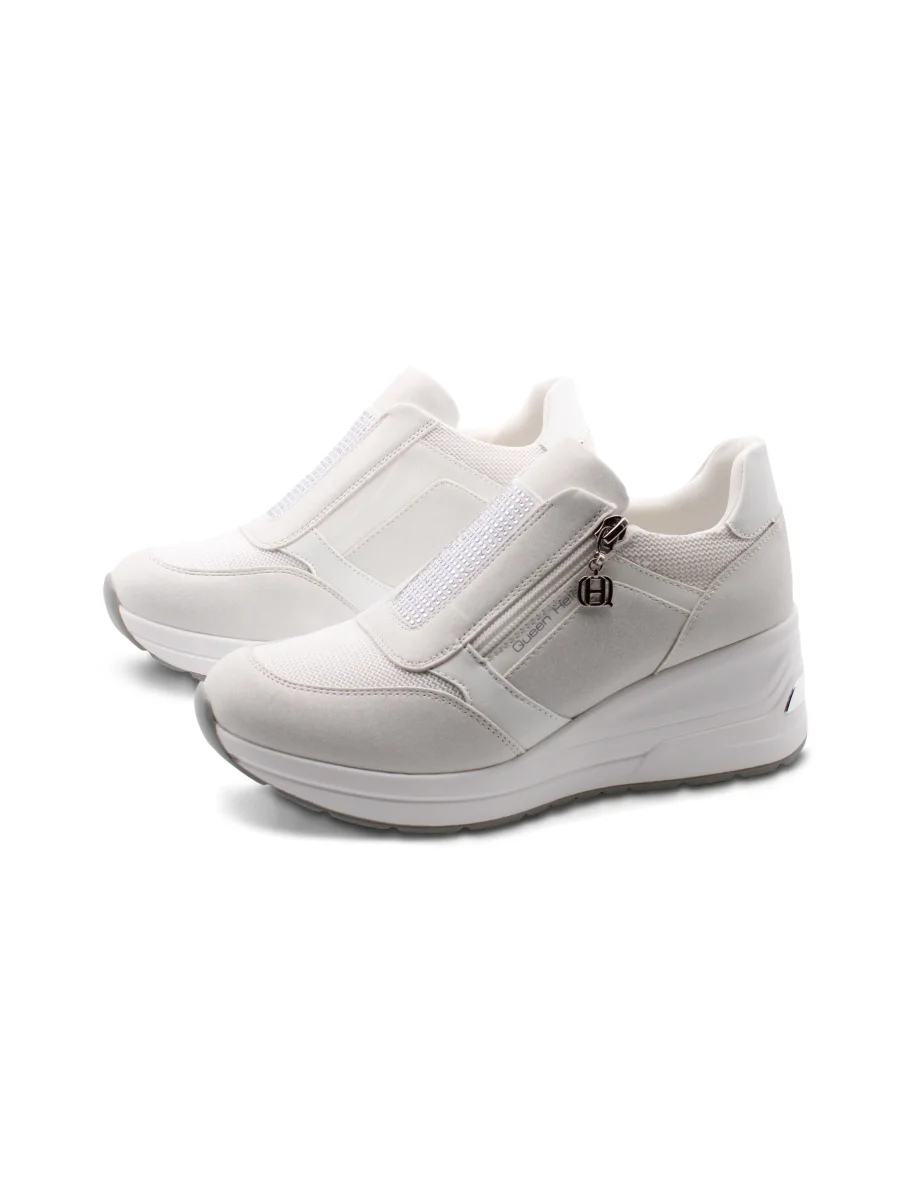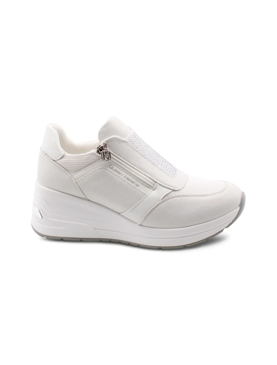 Questa sneaker zeppa da donna firmata Queen Helena unisce comodità e stile in modo semplice ma efficace. La fodera in tessuto avvolge il piede con morbidezza, assicurando una calzata piacevole anche dopo ore di utilizzo. Il plantare è removibile, così puoi personalizzare il comfort o sostituirlo con un supporto su misura se ne hai bisogno. La zeppa di 6,5 cm regala una bella alzata senza sacrificare la stabilità , mentre il plateau da 2,5 cm bilancia perfettamente la silhouette del piede, rendendo la camminata più naturale e meno affaticante. Il sottopiede in tessuto completa la sensazione di freschezza, mantenendo il piede asciutto e comodo durante tutta la giornata. Perfetta per chi cerca una scarpa versatile, che unisca un tocco di femminilità a un comfort pratico, senza troppi fronzoli.