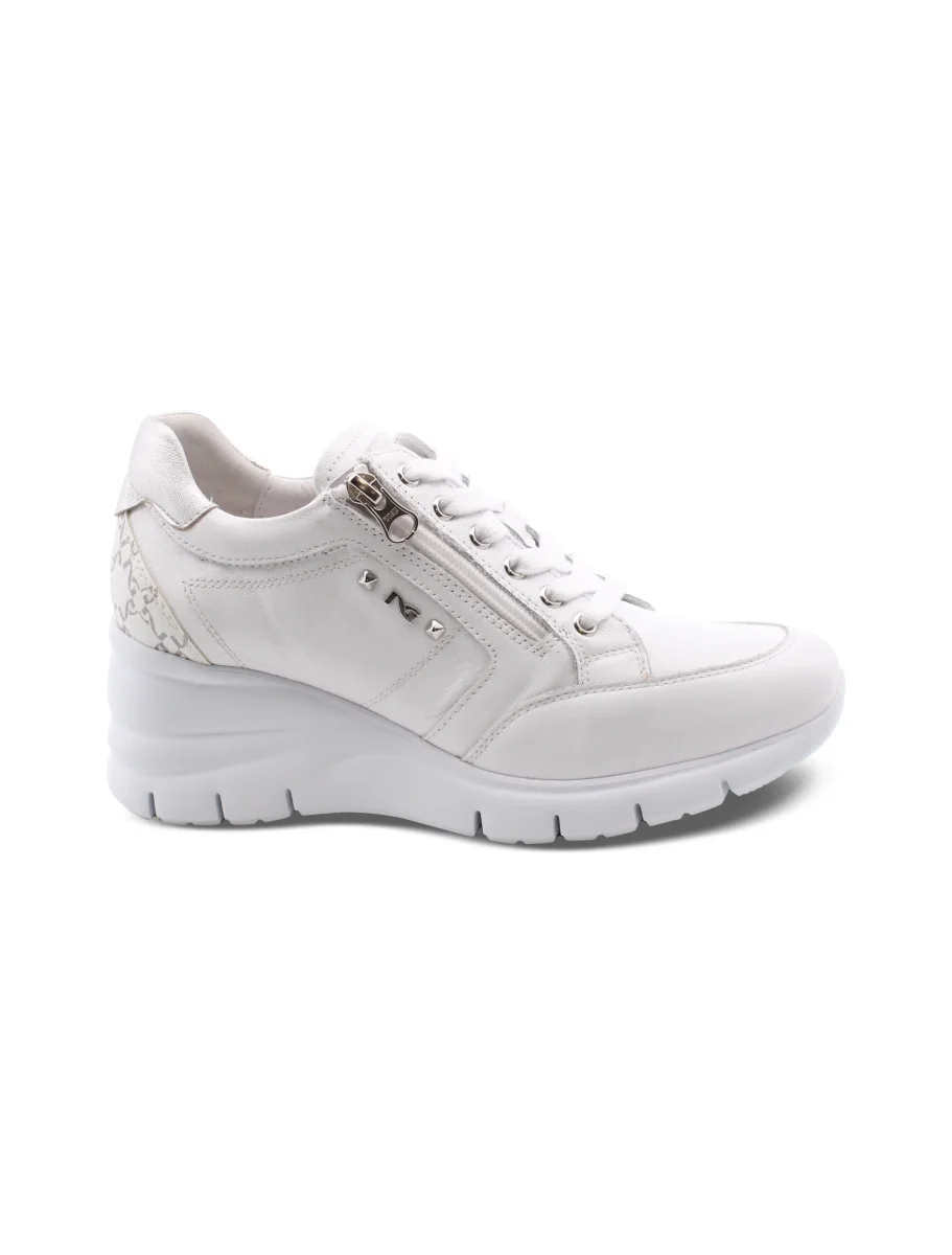 Sneaker zeppa in pelle con zip laterale