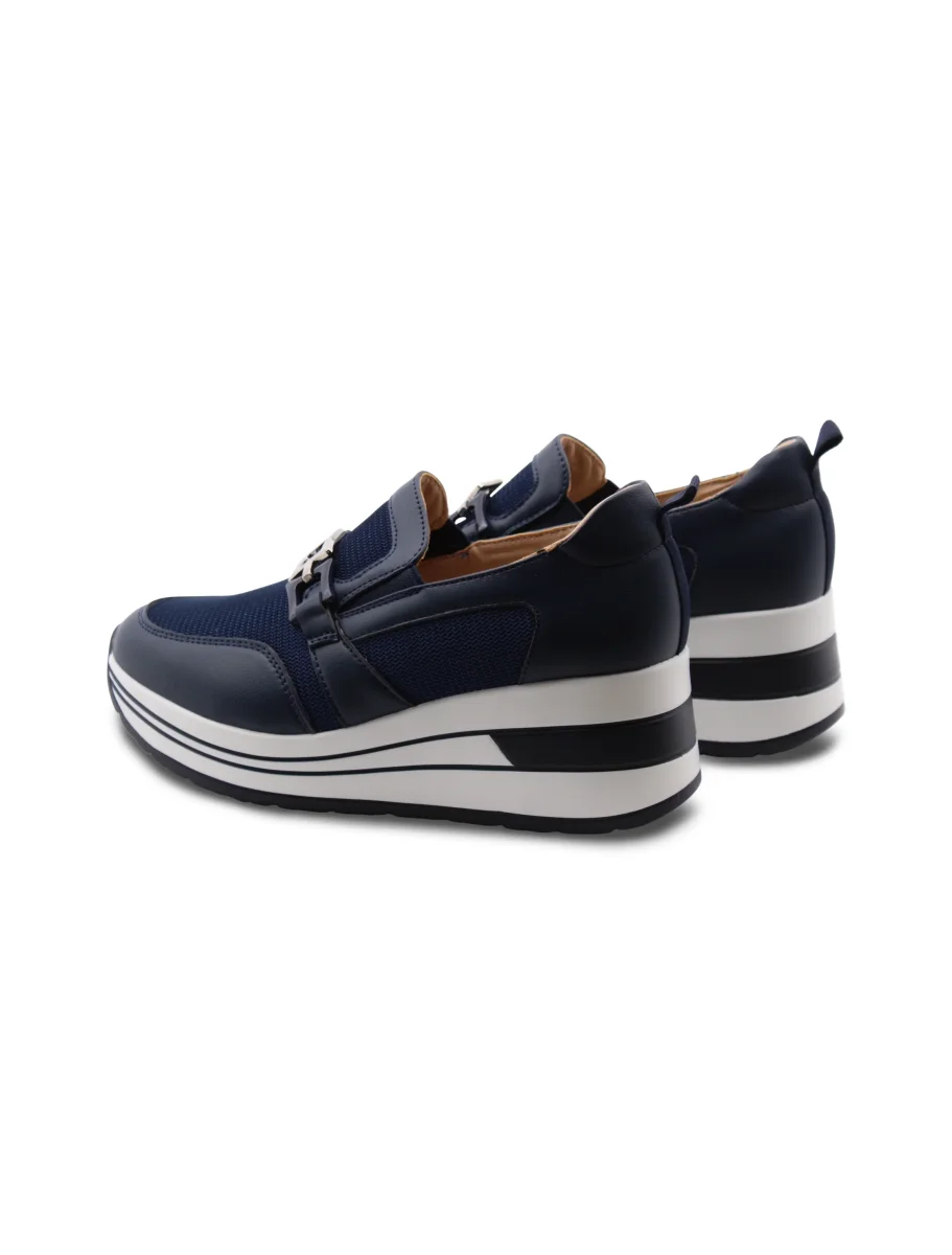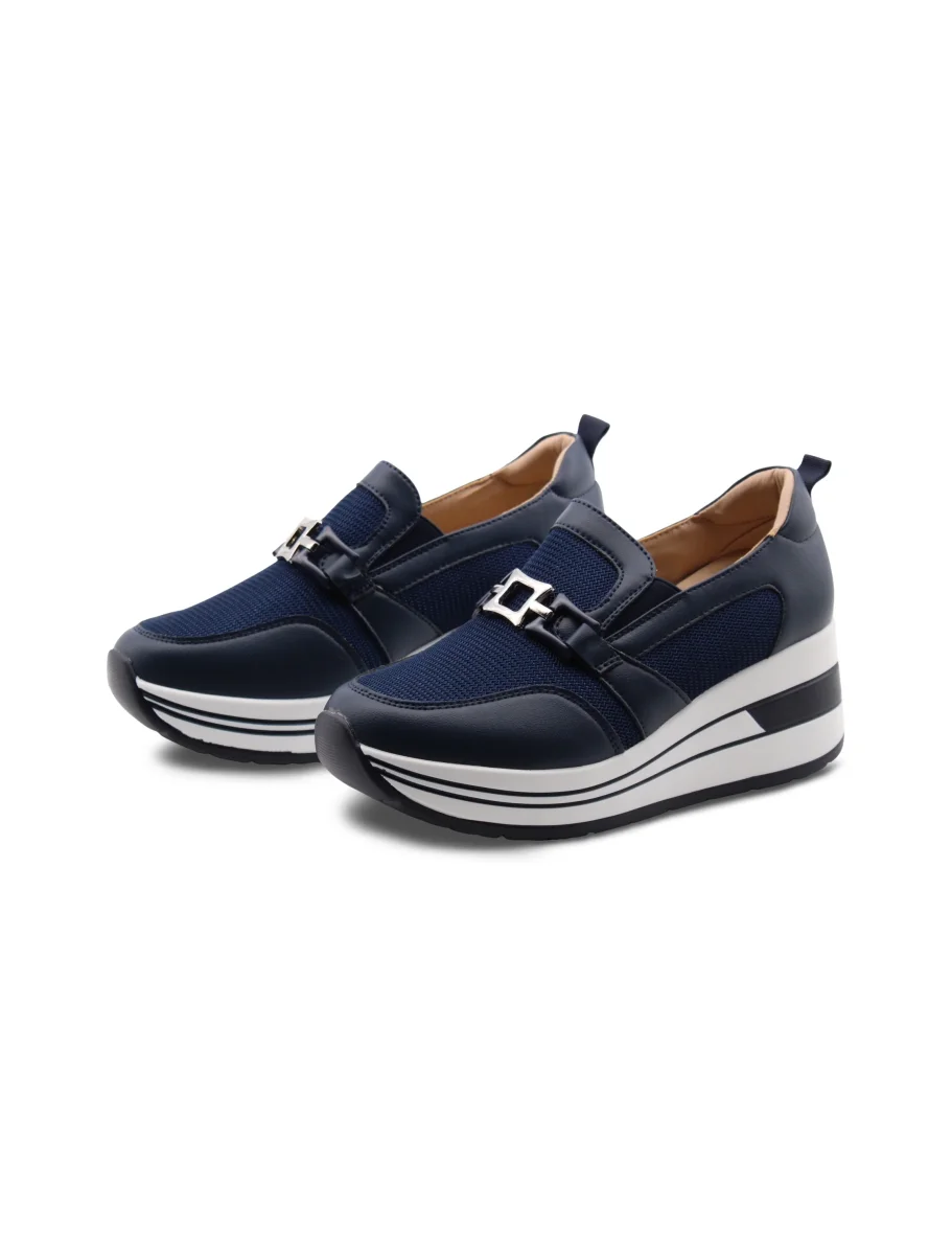 La sneaker zeppa slip on da donna Malena combina comodità e stile con dettagli studiati per il massimo comfort quotidiano. La fodera in tessuto garantisce una piacevole traspirazione, mantenendo il piede fresco anche dopo diverse ore di utilizzo. Il plantare removibile permette di personalizzare l’esperienza di calzata, facilitando anche la sostituzione con ortopedici se necessario.