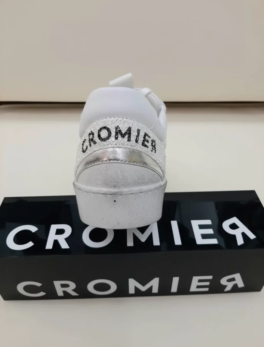 Suola in gomma e linguetta in gros grain con logo Cromier.