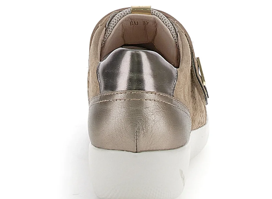 TOMAIA IN CAMOSCIO FORATA CON INSERTI IN PELLE METALIZZATA