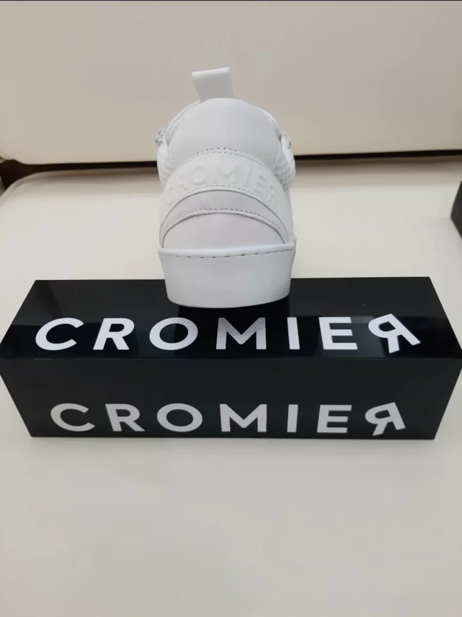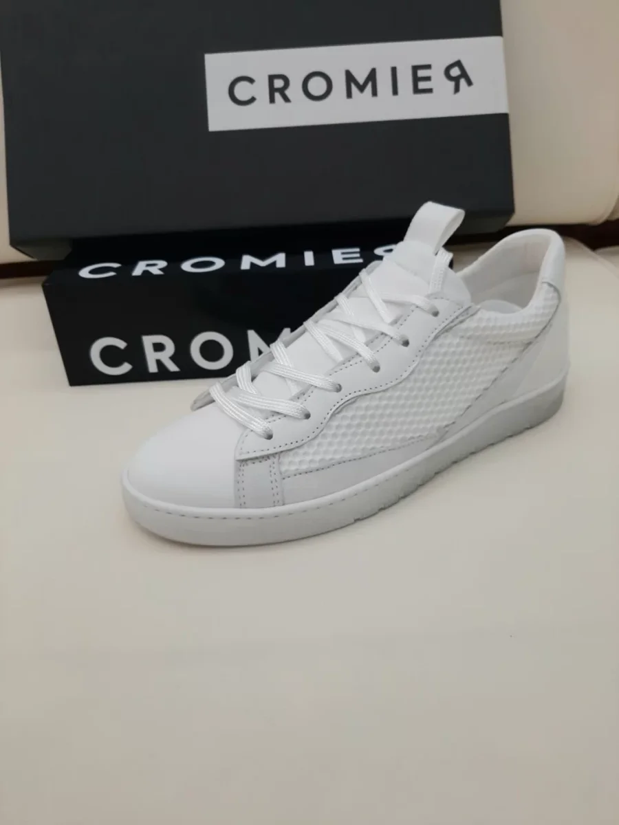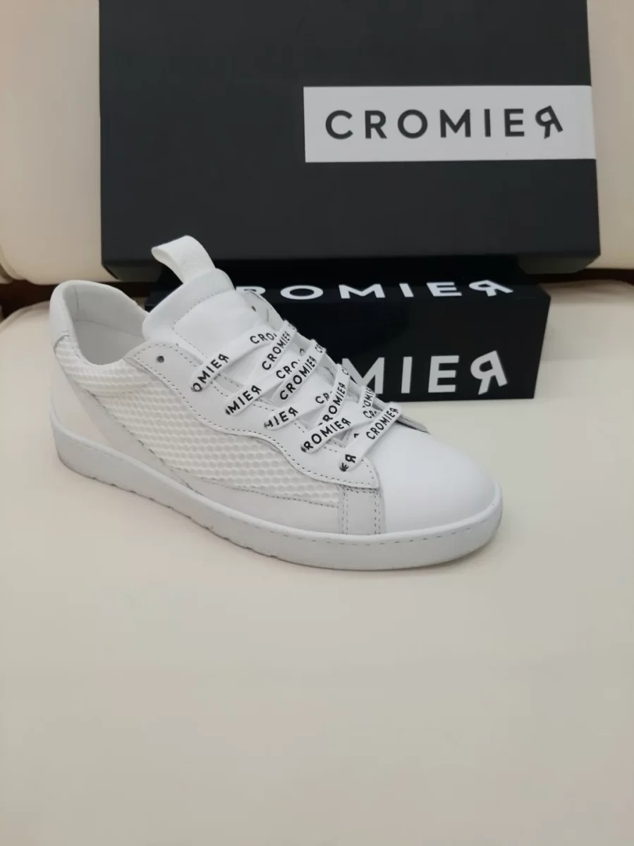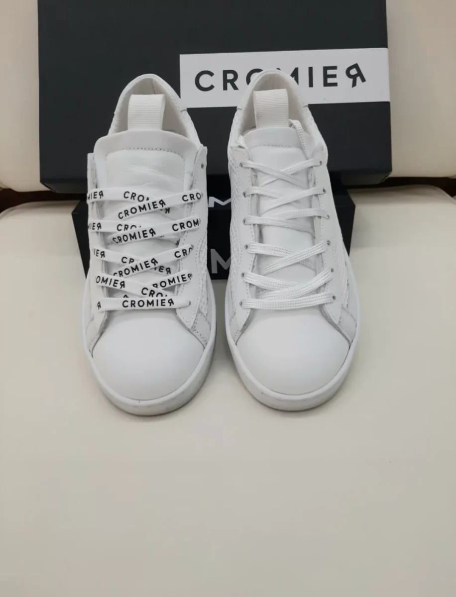 Sneakers in pelle con inserti in pelle laminata e in tessuto glitterato alla punta e logo CROMIERÂ sul tallone