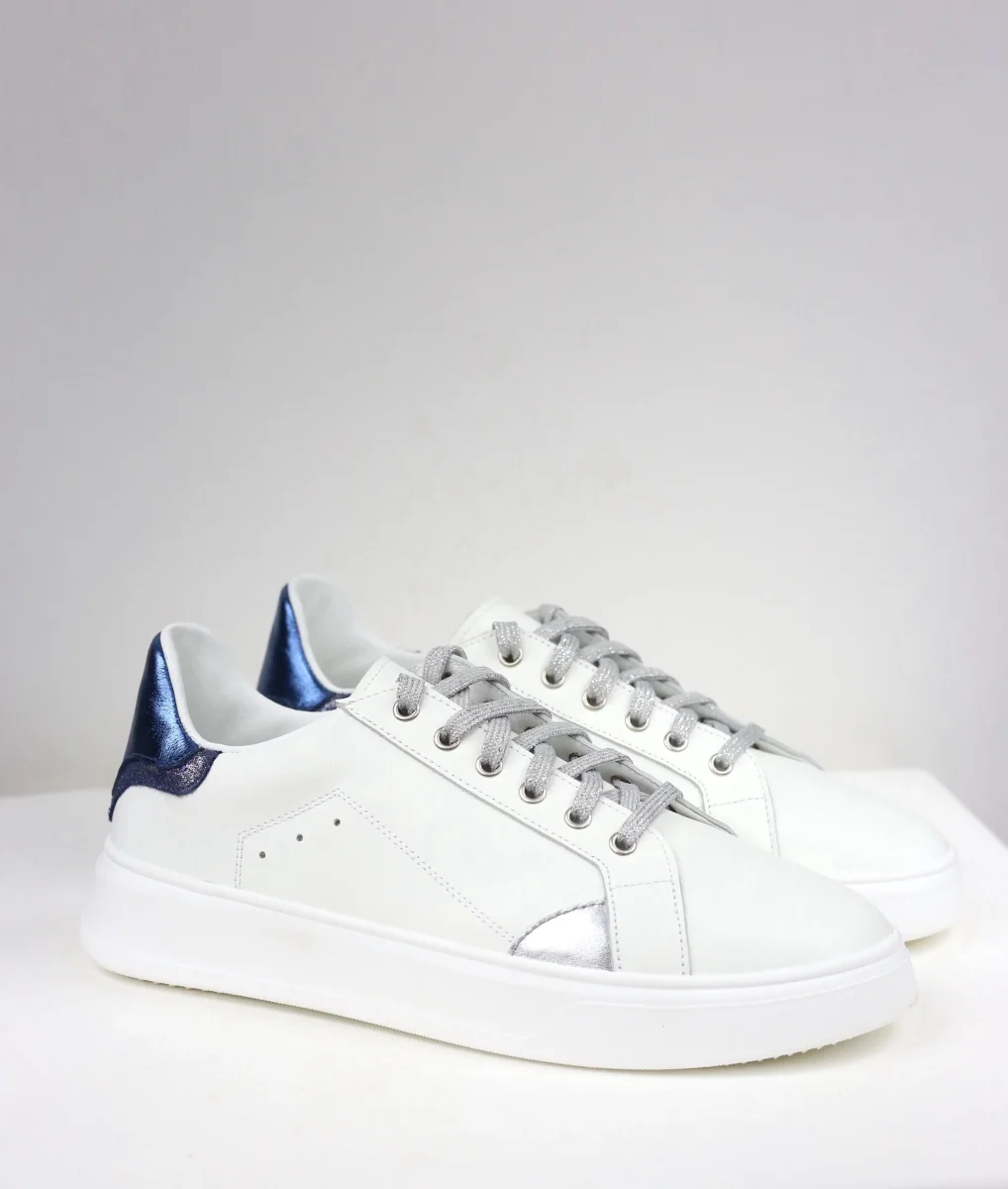 Le sneakers Luce donna blu, sono interamente prodotte in Italia con materiali di altissima qualità. In vera pelle con la fodera interna in spugna permettono ai tuoi piedi di sentirsi leggeri e a loro agio. Con il loro design sobrio ma moderno, sono perfette per aggiungere un twist contemporaneo ed elegante ad ogni tuo outfit quotidiano e speciale.