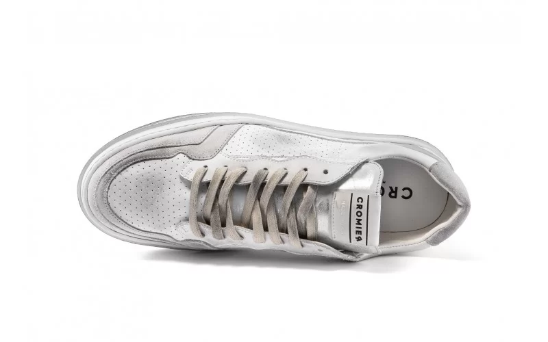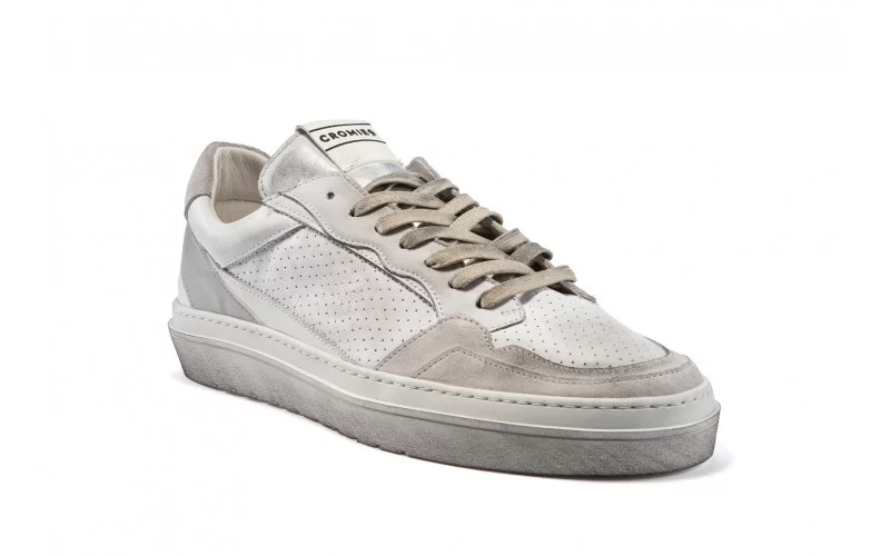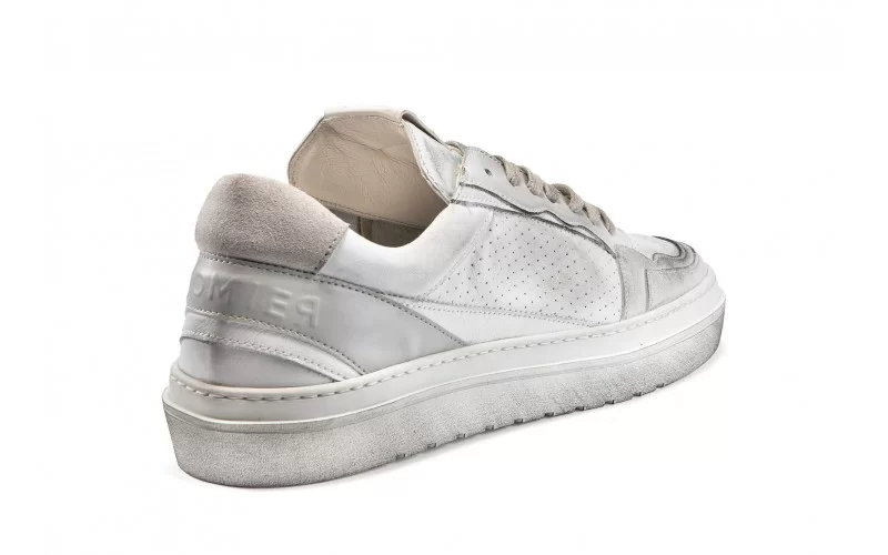 Sneaker a vaschetta in pelle punzonata con inserti in pelle scamosciata. Profili foderati in pelle