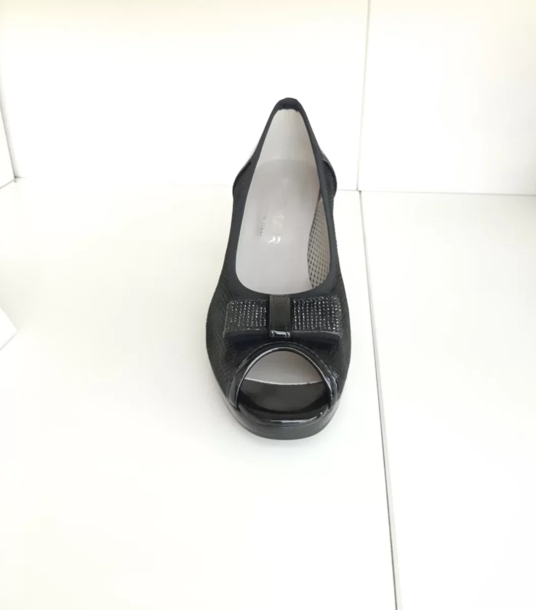 Scarpa spuntata con tacco 6 lucido con plateau.