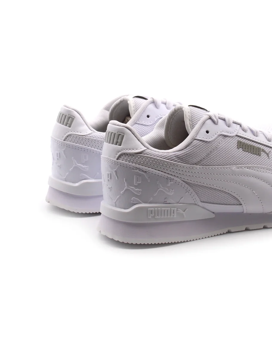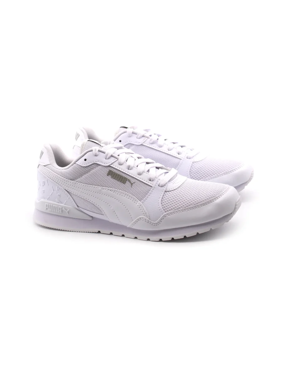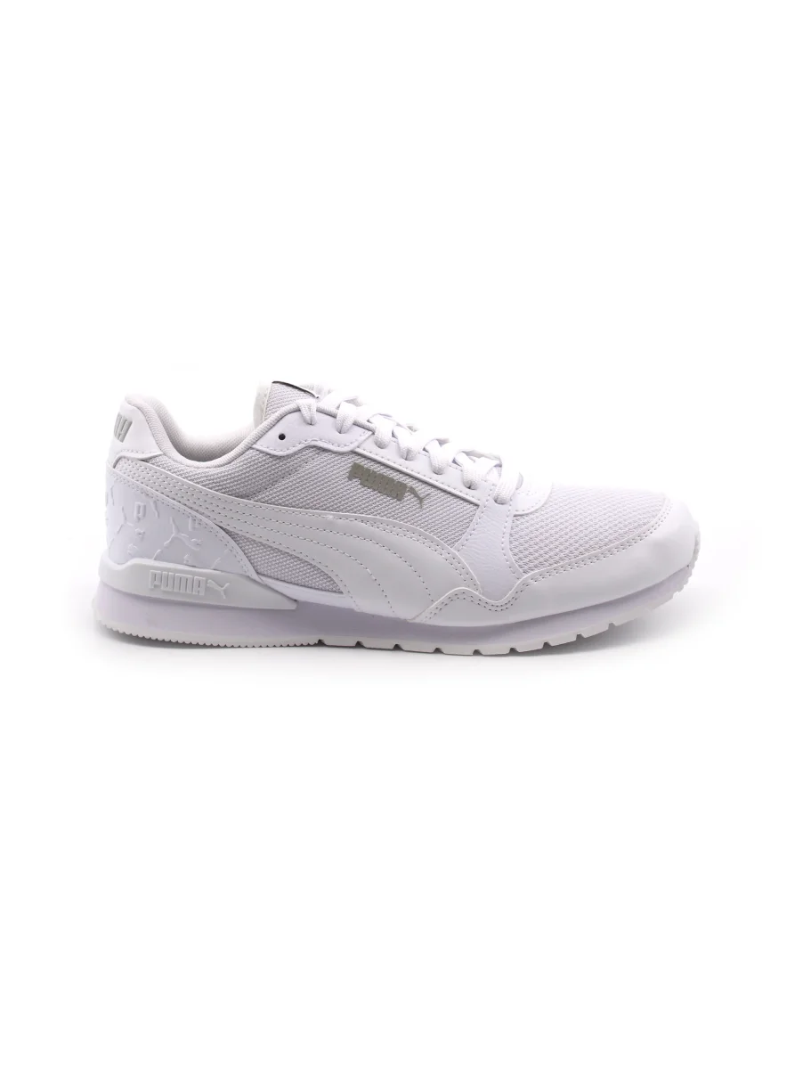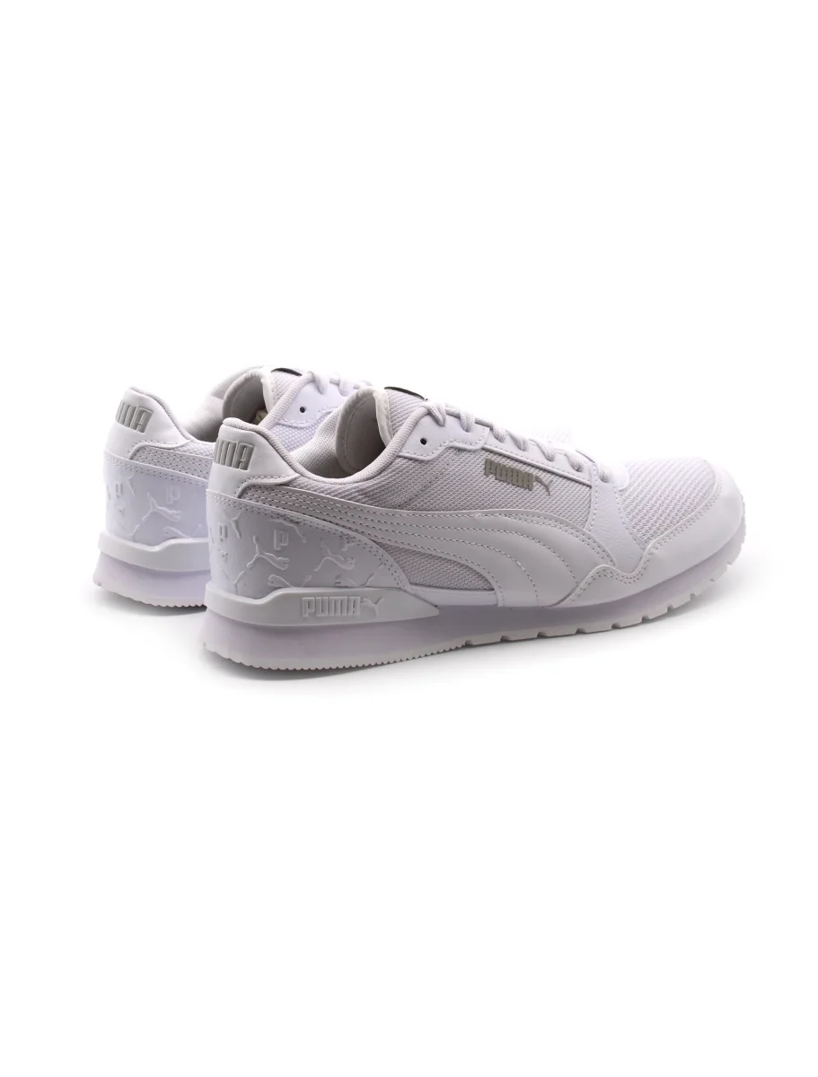 Sneaker da uomo Puma St Runner V3 L Superlogo in tessuto con inserti in pelle sintetica. Il morbido sottopiede removibile in tessuto SoftFoam+ garantisce, insieme al fondo in gomma un ottimo comfort.