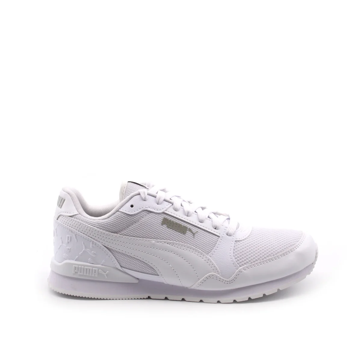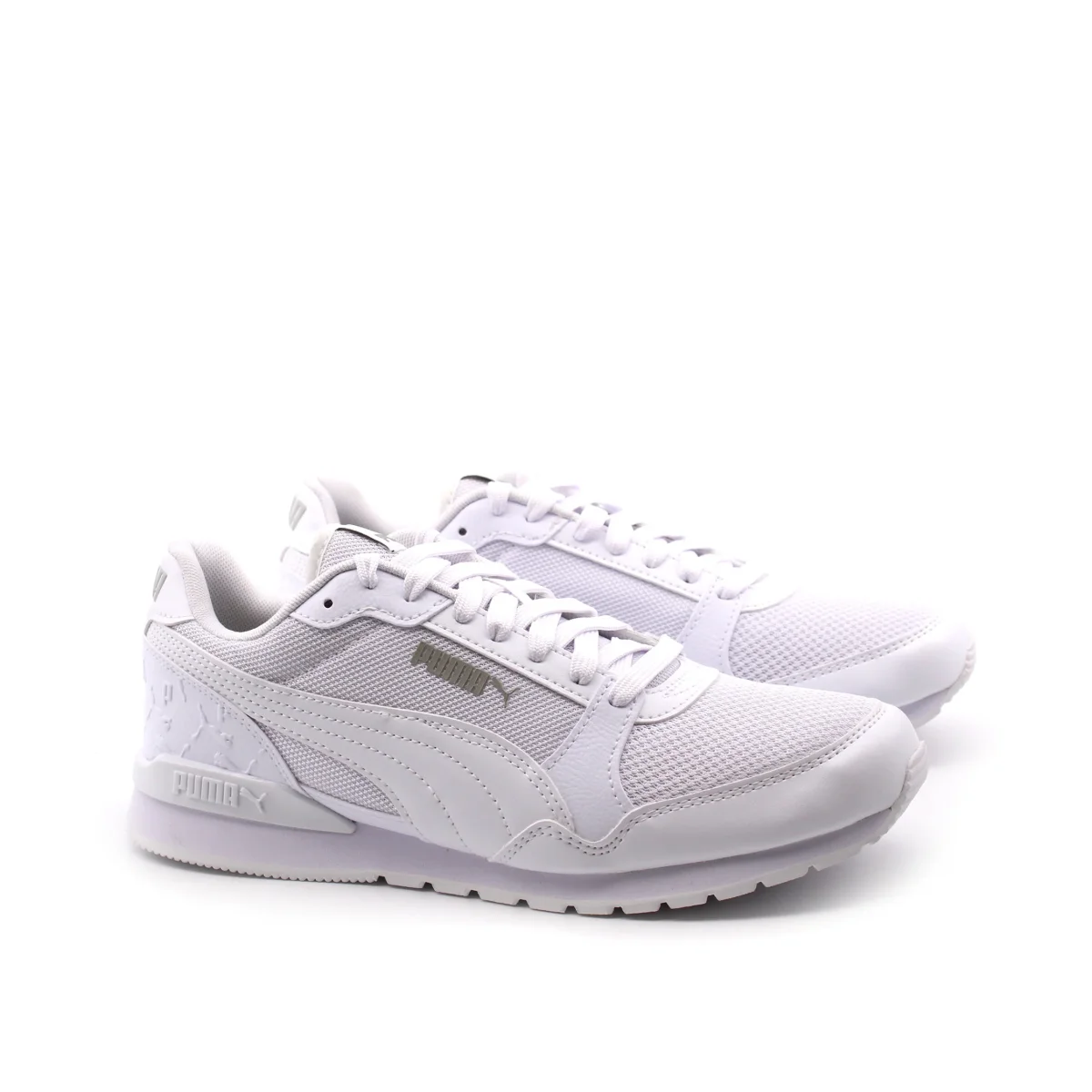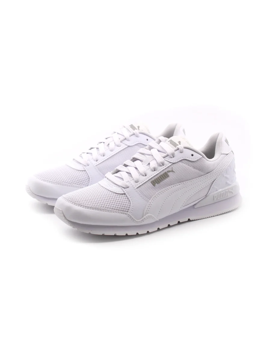 Sneaker da uomo Puma St Runner V3 L Superlogo in tessuto con inserti in pelle sintetica. Il morbido sottopiede removibile in tessuto SoftFoam+ garantisce, insieme al fondo in gomma un ottimo comfort.