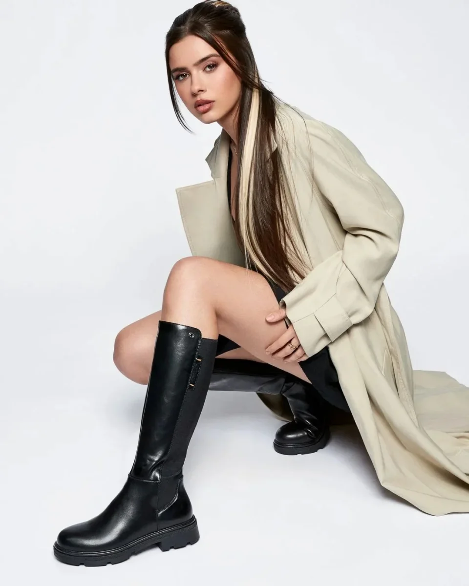 STIVALE IN SIMIL PELLE CON POLPACCIO ELASTICIZZATO PER UNACALZATA PIù AMPIA