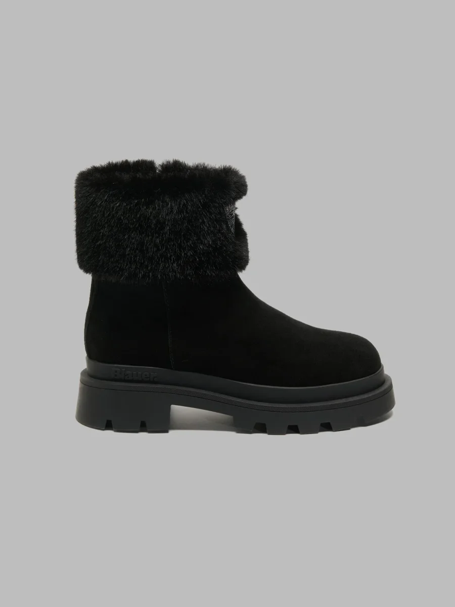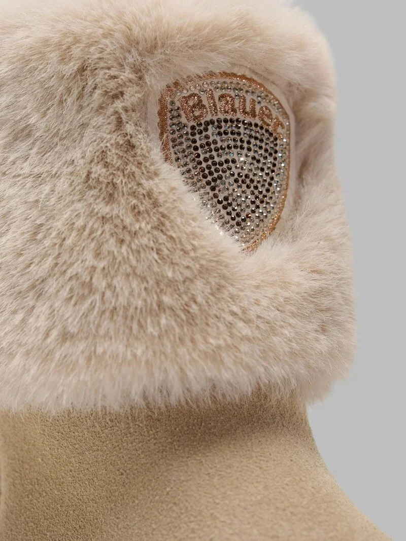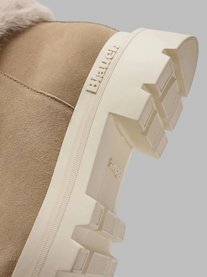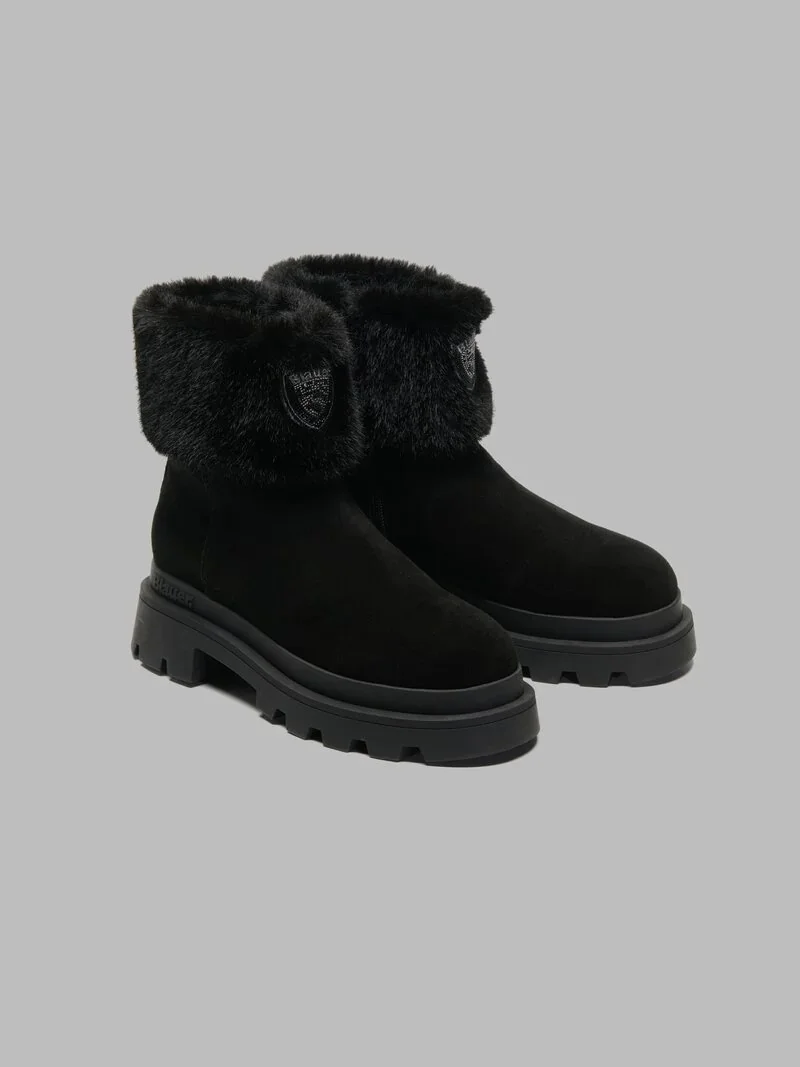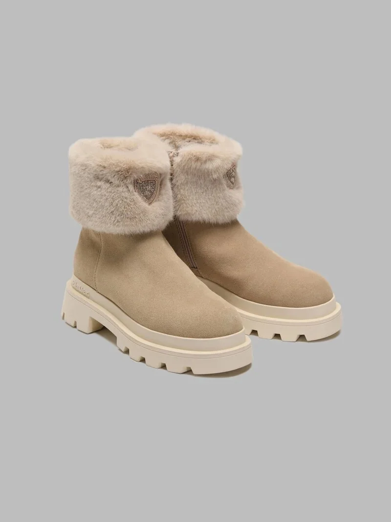 TOMAIA IN CAMOSCIO CON RISVOLTO DI PELLICCIOTTO E LOGO BRILLANTINATO