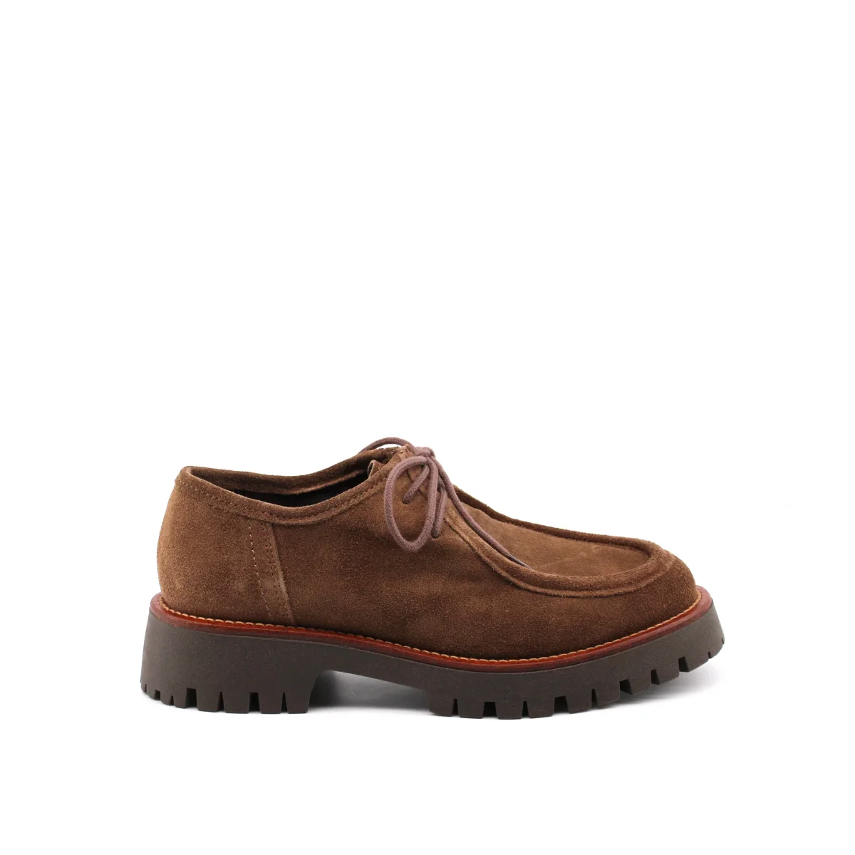 Conte’ stringata da donna con tomaia in vera pelle scamosciata, morbido sottopiedere in vera pelle e suola carrarmato in gomma. Comoda e alla moda.