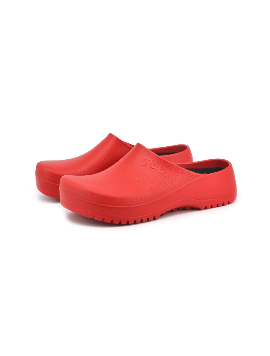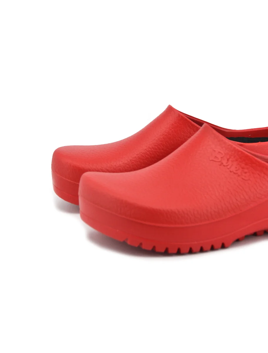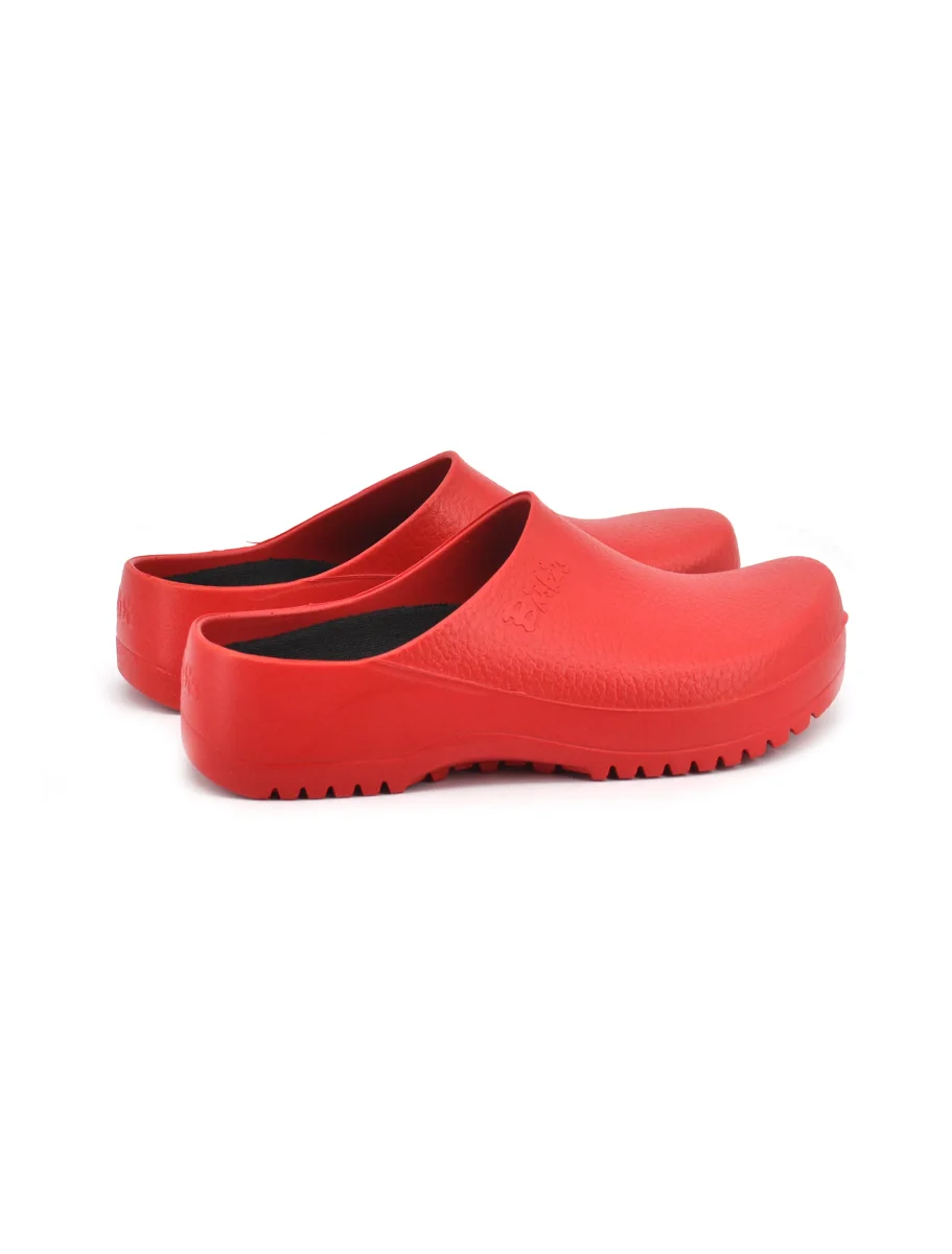 Sabot da donna Birkenstock Super-Birki in poliuretano idrorepellente e resistente allo sporco con morbido sottopiede removibile in sughero rivestito con un tessuto traspirante e fondo in Pu antiscivolo. Scarpa professionale certificata secondo EN ISO 20347:2012 OB E (categoria SRC). Ideale in campo culinario, medico e nell’industria alimentare.