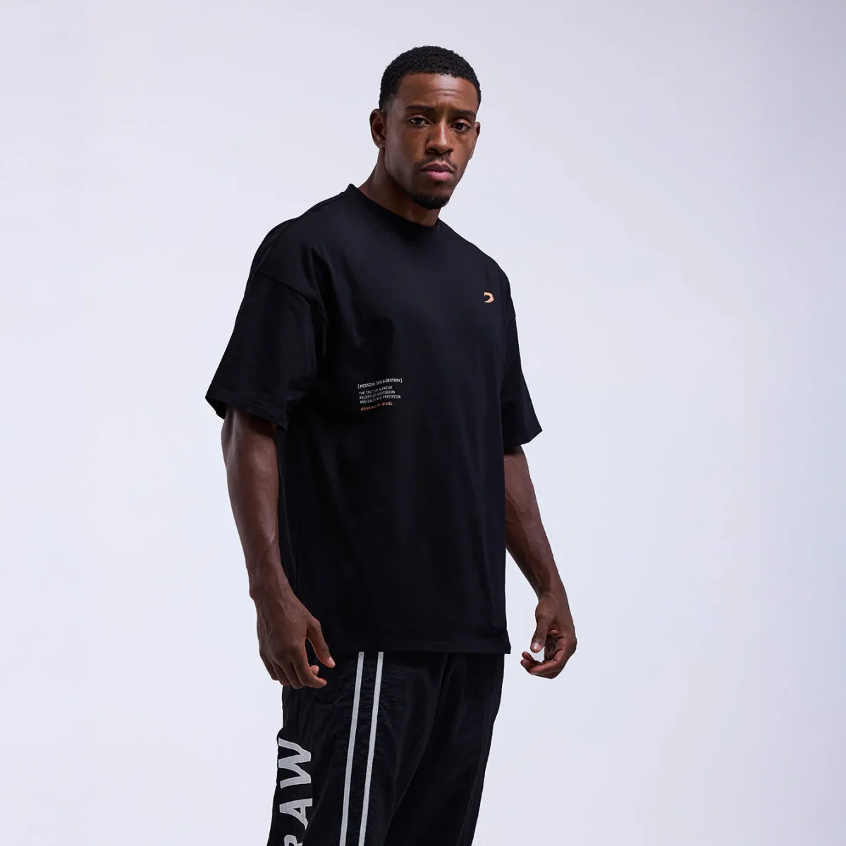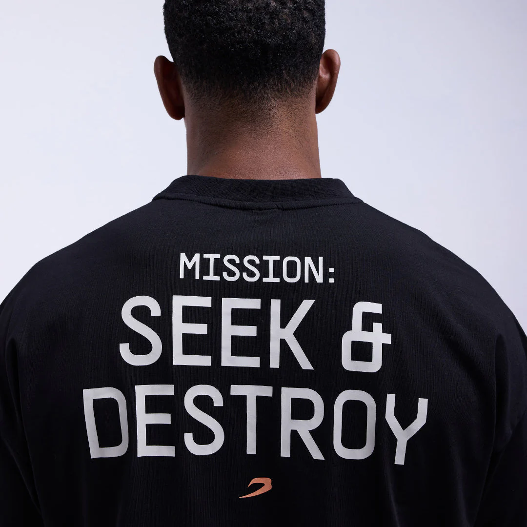 La T-shirt Bivol x Boxraw Oversize nero è realizzata in collaborazione con il grande campione Dmitry Bivol. Realizzata in cotone pettinato elasticizzato (92% cotone, 8% elastan), combina traspirabilità e struttura in un taglio oversize pensato per il movimento. Caratterizzata da spalle con taglio basso e maniche corte, questa t-shirt è rifinita con una grafica audace “Mission: Seek & Destroy”, a testimoniare una mentalità vincente e determinata.