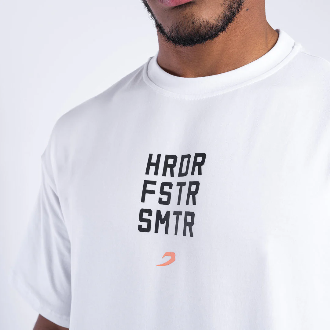 T-shirt Boxraw HRDR FSTR SMTR Oversize Bianco