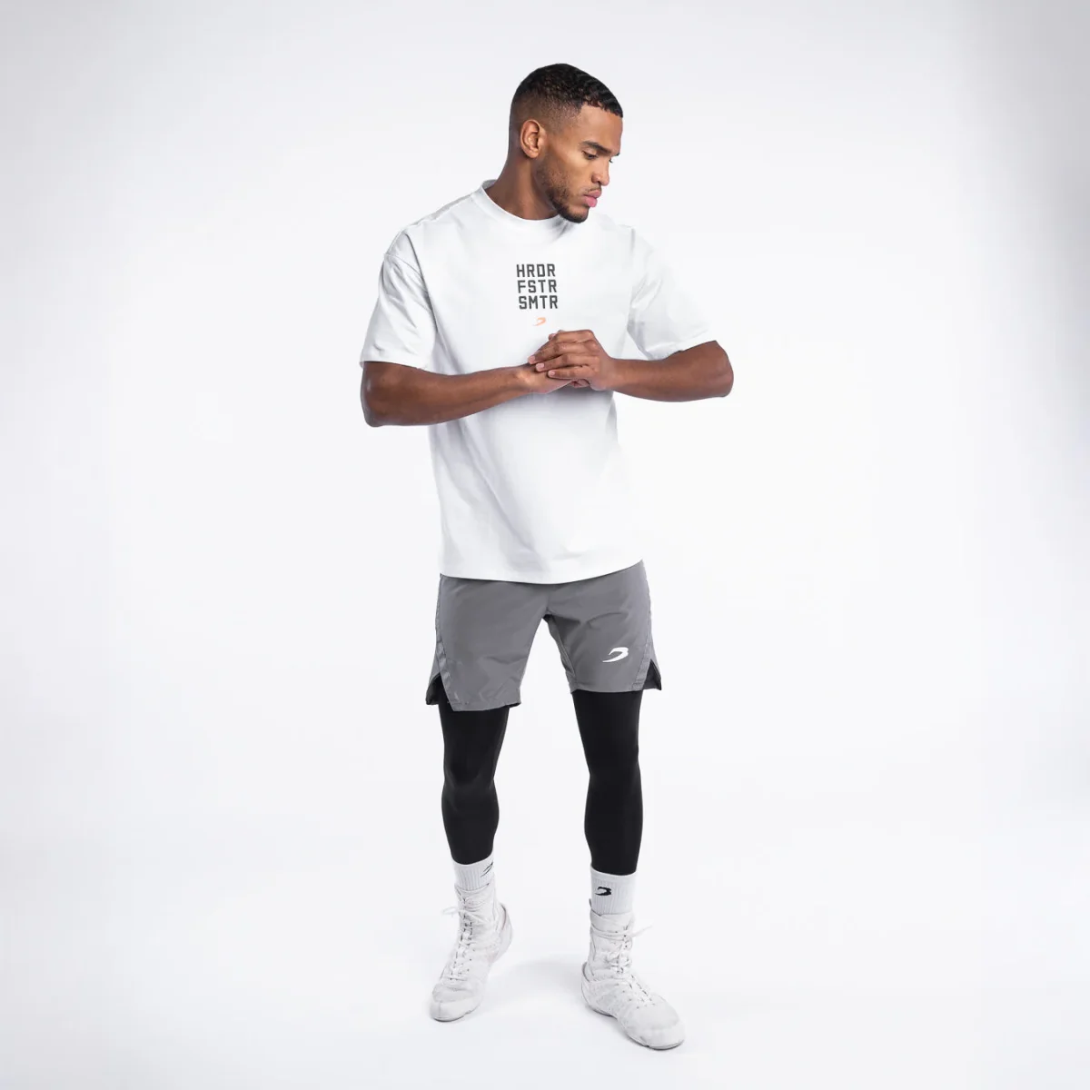 La T-shirt Boxraw HRDR FSTR SMTR Oversize bianco è progettata per offrire ultra comfort e stile per allenamento e tempo libero, grazie alla combinazione di traspirabilità, struttura e libertà di movimento. Il tessuto in cotone pettinato elasticizzato (92% cotone, 8% elastan) garantisce morbidezza e resistenza in ogni occasione. Il fit oversize con spalla dal taglio basso assicura una vestibilità ampia, ideale sia in palestra che nel tempo libero. Il messaggio HRDR FSTR SMTR stampato sul petto e sul retro incarna l’essenza della filosofia Boxraw: lavora più duramente, muoviti più velocemente, combatti con più intelligenza.